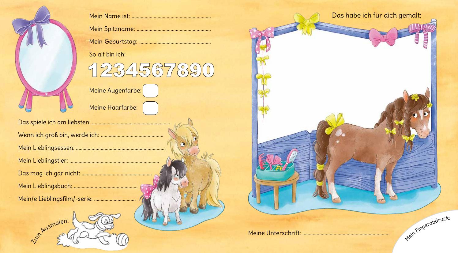 Für jeden kleinen Pferdefan hält dieses Album die perfekte Seite zum Eintragen bereit. Was ist euer Lieblingsessen? Was mögt ihr überhaupt nicht? Und was spielt ihr am liebsten? Dieses niedliche