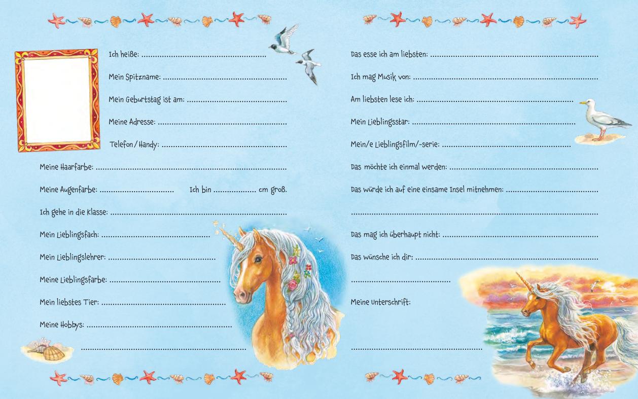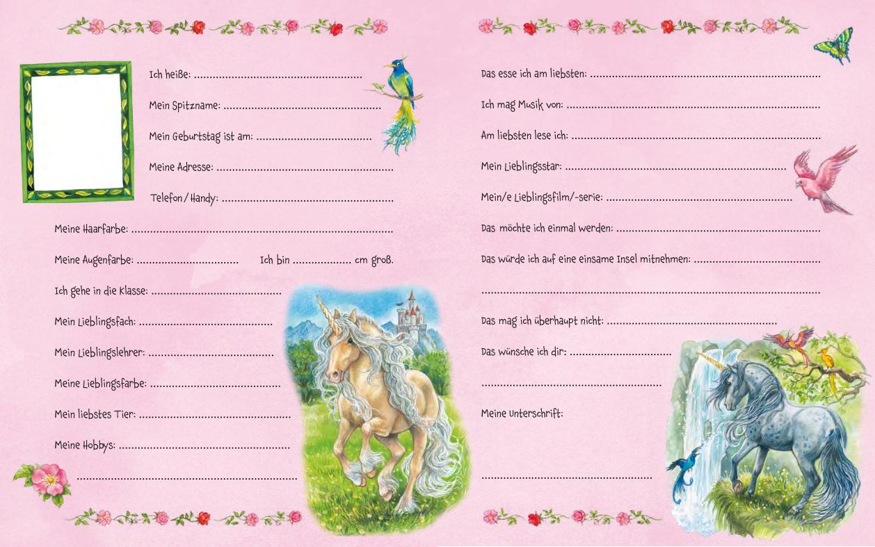 ¿ Auf jeder Doppelseite können Infos wie Name, Spitzname, Alter und Vorlieben eingetragen werden.