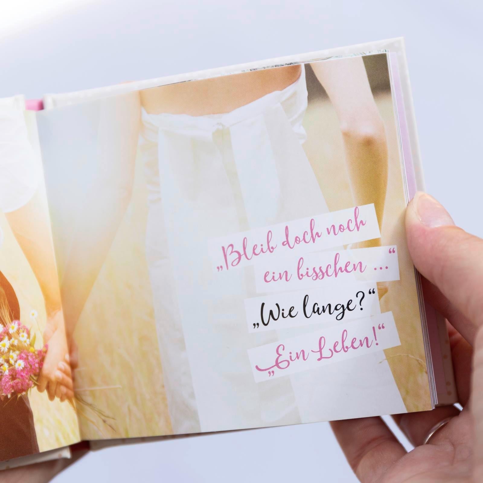 Dieses kleine Buch gefällt sowohl Braut als auch Bräutigam. Die zeitlose Gestaltung macht es zu einem originellen Mitbringsel. Viele stimmungsvolle Fotografien und liebevolle Worte drücken Ihre Freude über die Hochzeit des Brautpaars aus.
