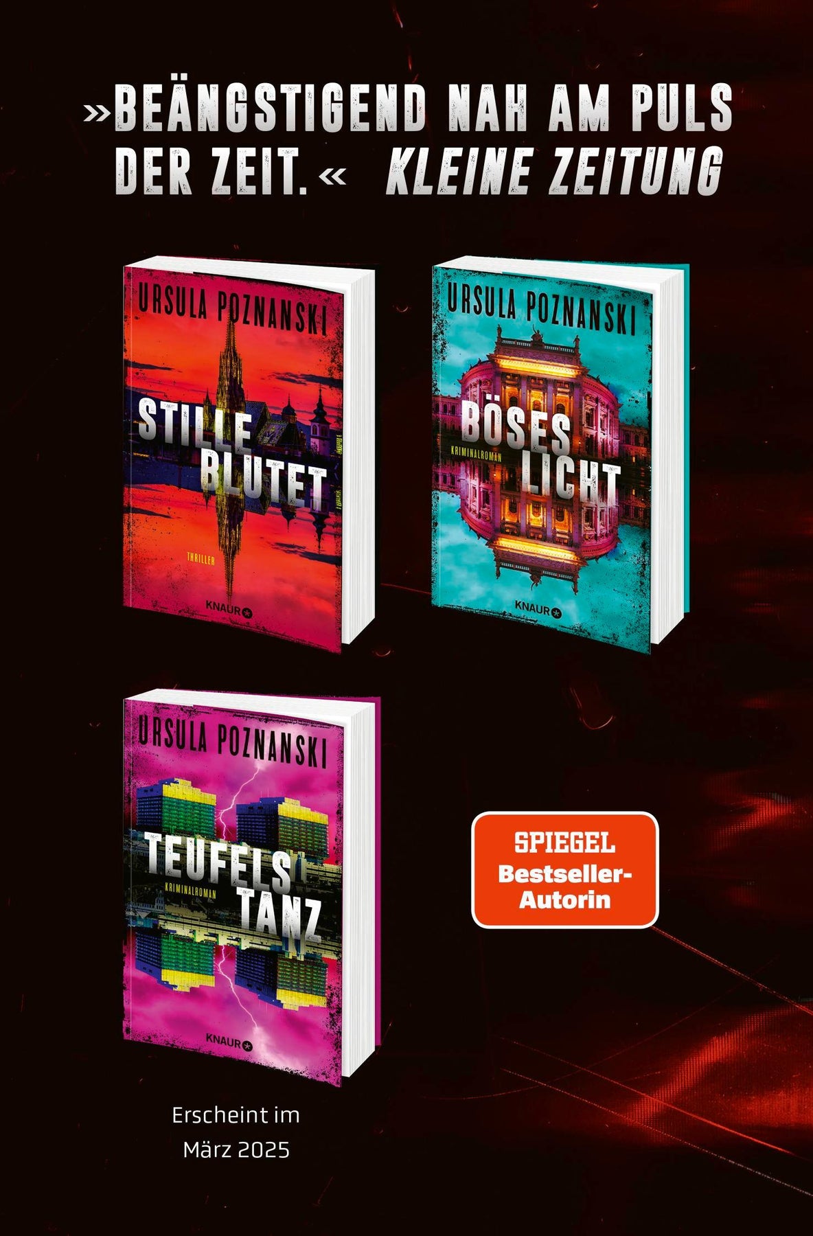 Ursula Poznanski, vielfache Bestseller-Autorin ('Die Burg'), begeistert mit einer Thriller-Reihe, deren Bände über eine ebenso schillernde wie zwielichtige Erzähler-Figur verknüpft sind. Wer ist diese geheimnisvolle Stimme aus dem Off, und was sind ihre wahren Absichten?