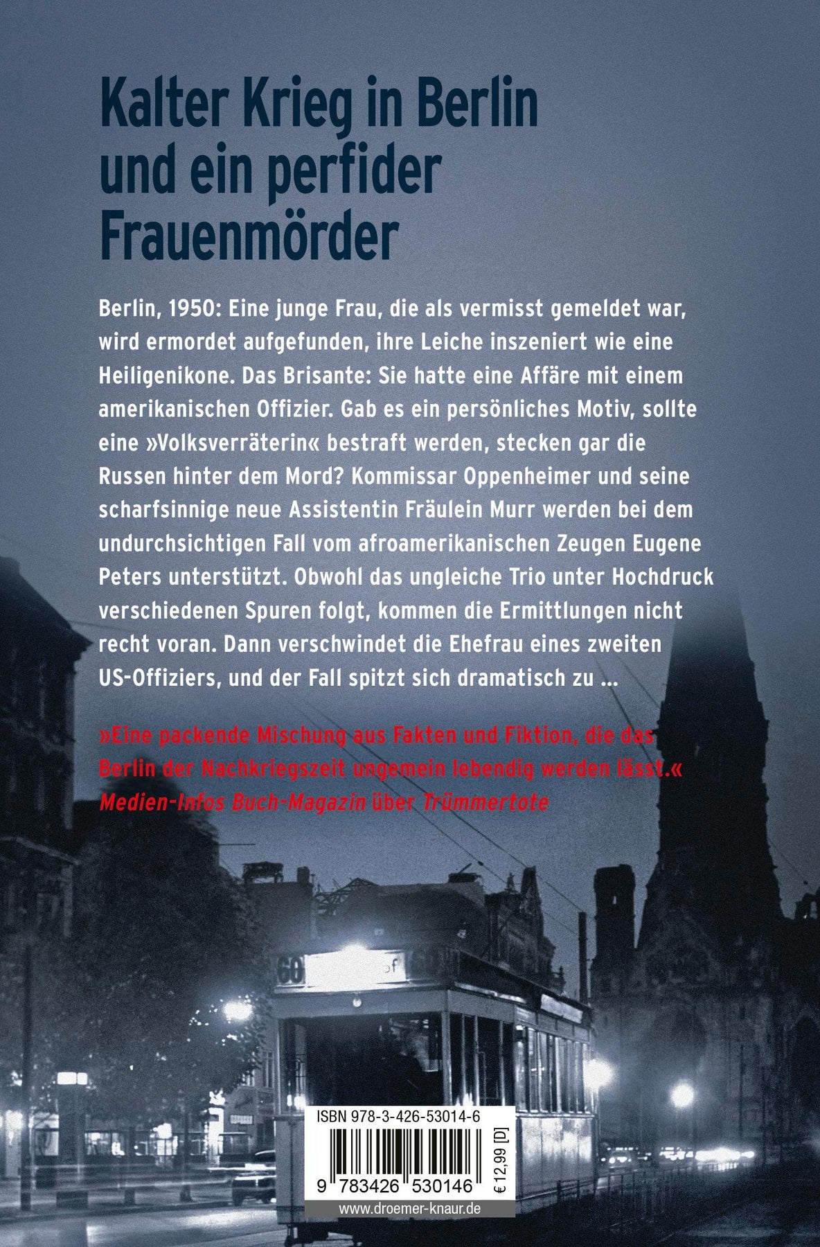 Berlin, 1950: Eine junge Frau, die als vermisst gemeldet war, wird schließlich ermordet aufgefunden, ihre Leiche inszeniert wie eine Heiligenikone. Das Brisante: Sie hatte eine Affäre mit einem amerikanischen Offizier. Gab es ein persönliches Motiv, sollte eine 'Volksverräterin' bestraft werden, oder stecken gar die Russen hinter dem Mord?