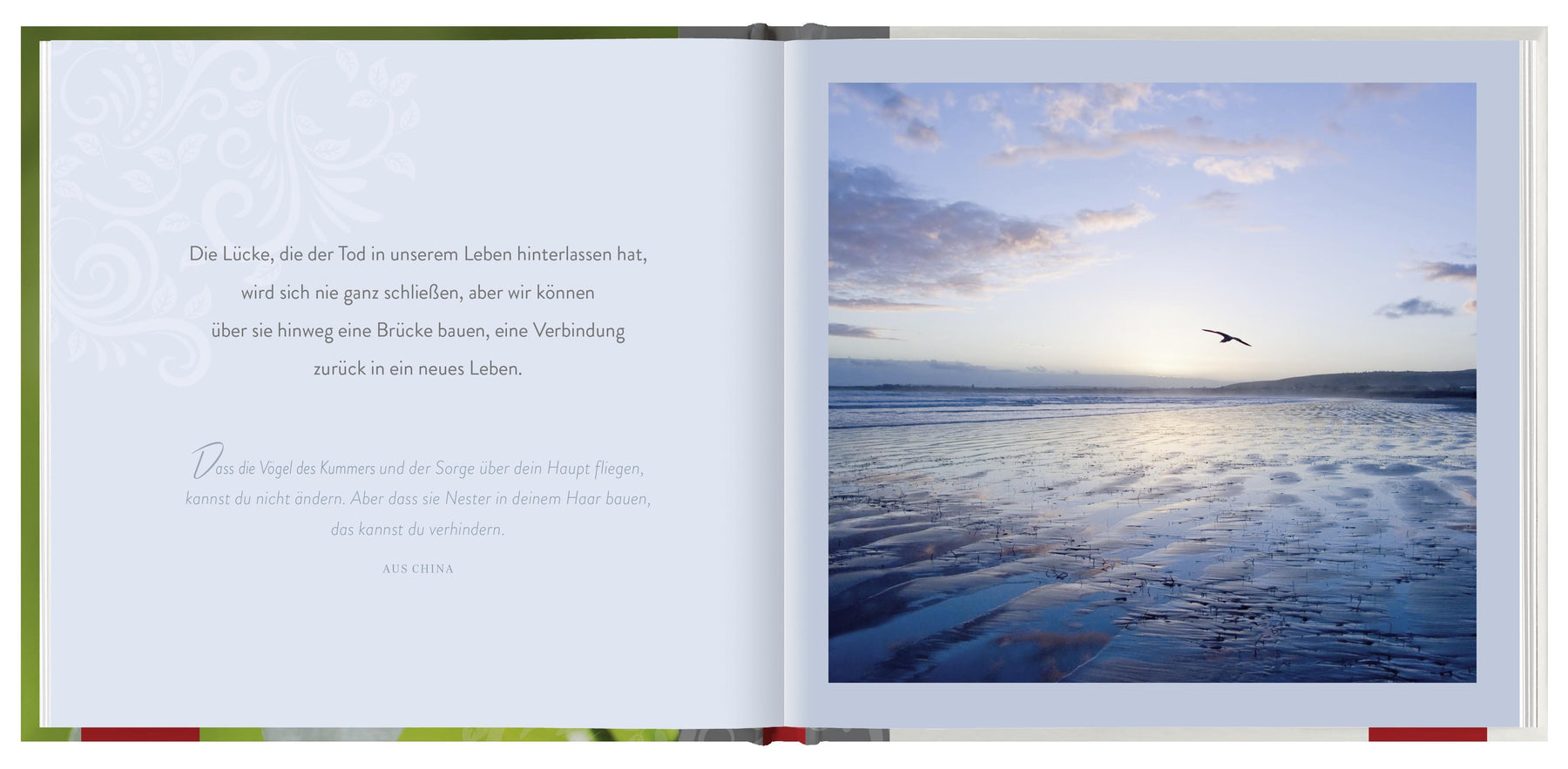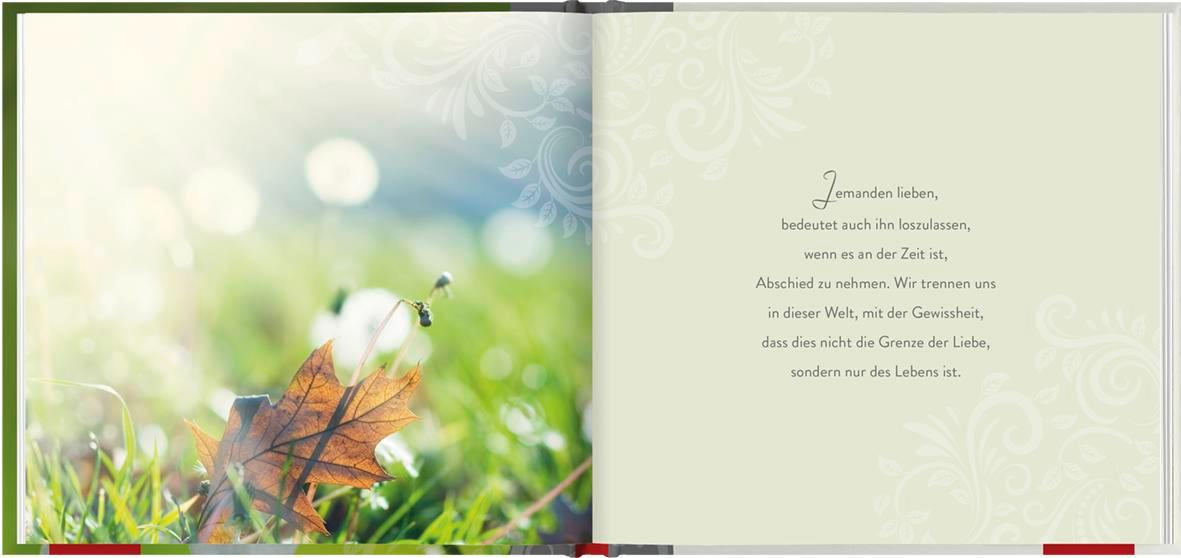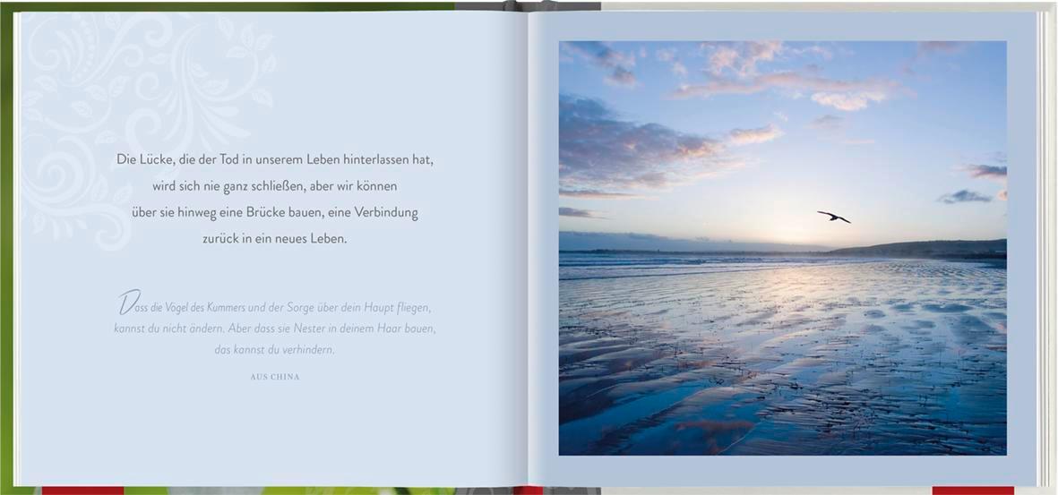 Einfühlsame Texte mit persönlicher Ansprache und stimmungsvolle Fotografien spenden Kraft und begleiten den Trauernden durch die schwere Zeit.