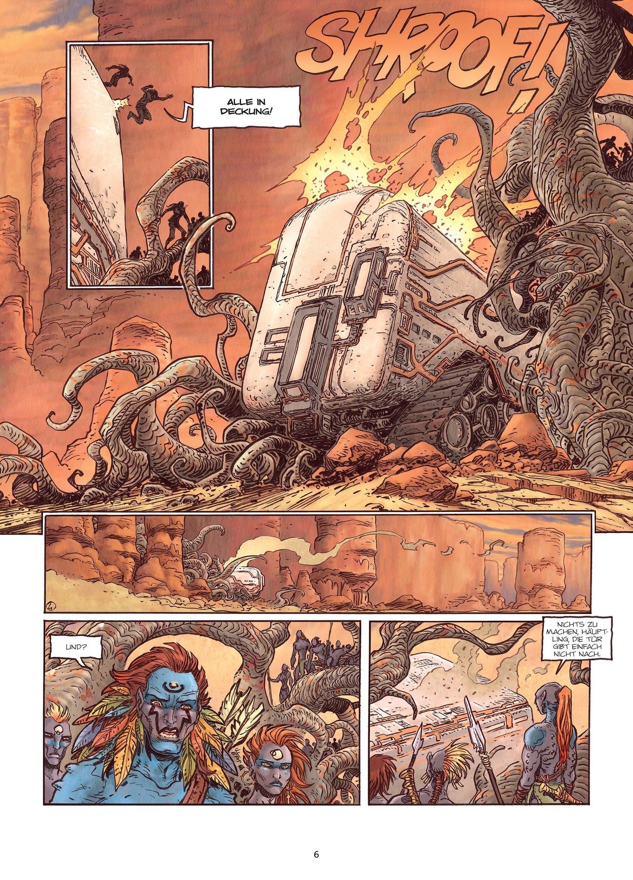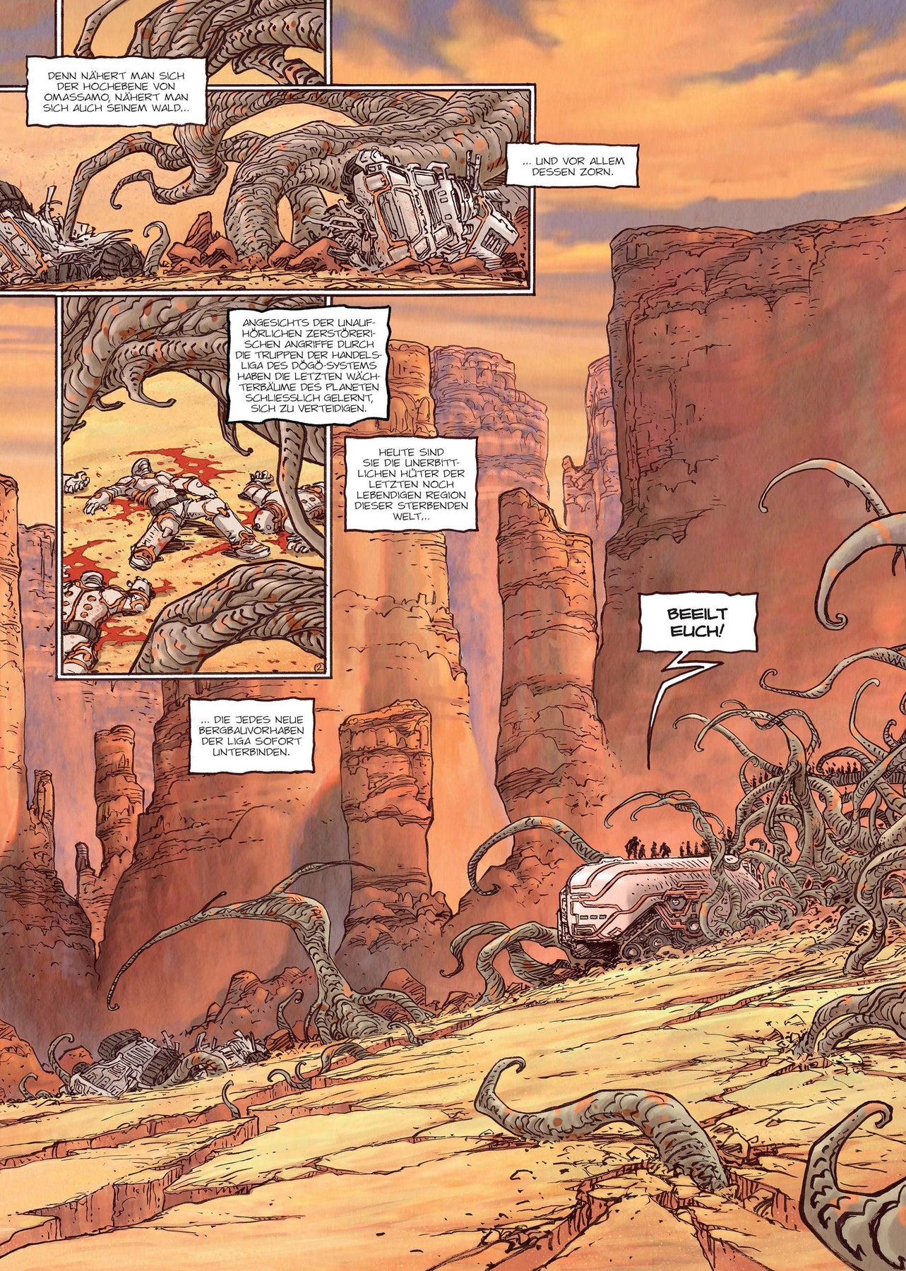 Die UCC Dolores sitzt auf Tishala fest. Mony hat ihre Fähigkeiten als Scharfschützin in den Dienst des dubiosen Sharkis, auch genannt der Furchtlose, gestellt. Sie braucht das Geld, um die Dolores zu reparieren, Tishala zu verlassen und so ihre Tochter zu retten, der die giftige Atmosphäre des Planeten immer stärker zusetzt. Nach einer turbulenten Reise quer durch die Wüste gelangt Monys Truppe an den Rand des Wassai-Gebiets, einer wahren Pflanzenoase. Und genau in dem Moment werden sie attackiert... Mit seiner ersten komplett eigenen Story reißt Didier Tarquin mit der einen Hand Genregrenzen ein, während er mit der anderen eine aufregende Weltraum-Odyssee vorlegt - voller charismatischer Helden, sinistrer Schurken und Verweise auf die größten Sci-Fi-Hits unserer Zeit!