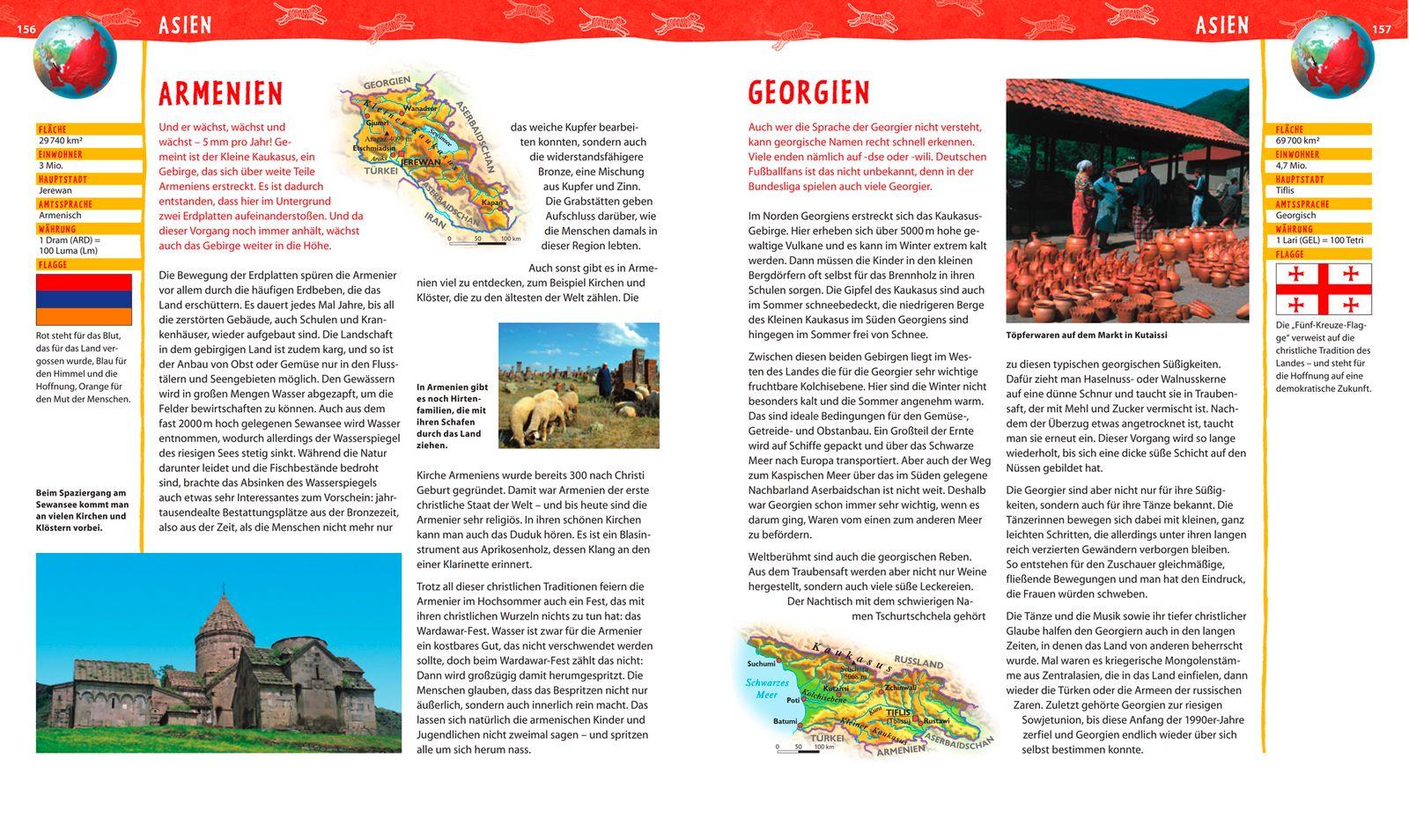Auf einer Lexikonreise um die Welt lernen Kinder alle Länder der Erde kennen. 196 Länderporträts fassen alle wichtigen Fakten sowie die Karte und Flagge des jeweiligen Landes zusammen. Spannende Texte und über 350 Fotos geben Einblick in den Alltag der Menschen, berichten über Tiere und Natur, Kultur und Geschichte. 25 GEOlino-Porträts stellen »Menschenskinder« aus aller Welt vor. Hier kann man zum Beispiel Lien beim Seepferdchen-Sammeln in Vietnam oder David beim Bumerangbau in Australien beobachten. Alles, was man über die Länder der Welt wissen muss, auf 288 Seiten!