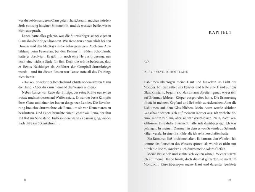 Unaufhaltsam tauchen neue, stärkere Elementare auf der Isle of Skye auf und Ava verliert zunehmend die Kontrolle über ihre Fähigkeiten. Nicht einmal Lance, dem sie mit ihrem Leben vertraut, kann ihr noch helfen. Als das Tribunal Ava als Gefahr für die Clans einstuft, wird die Jagd auf sie eröffnet. Ava flieht - nicht nur vor den Sturmkriegern, sondern auch vor ihren eigenen Kräften, die sich sogar gegen die Menschen richten, die sie am meisten liebt.