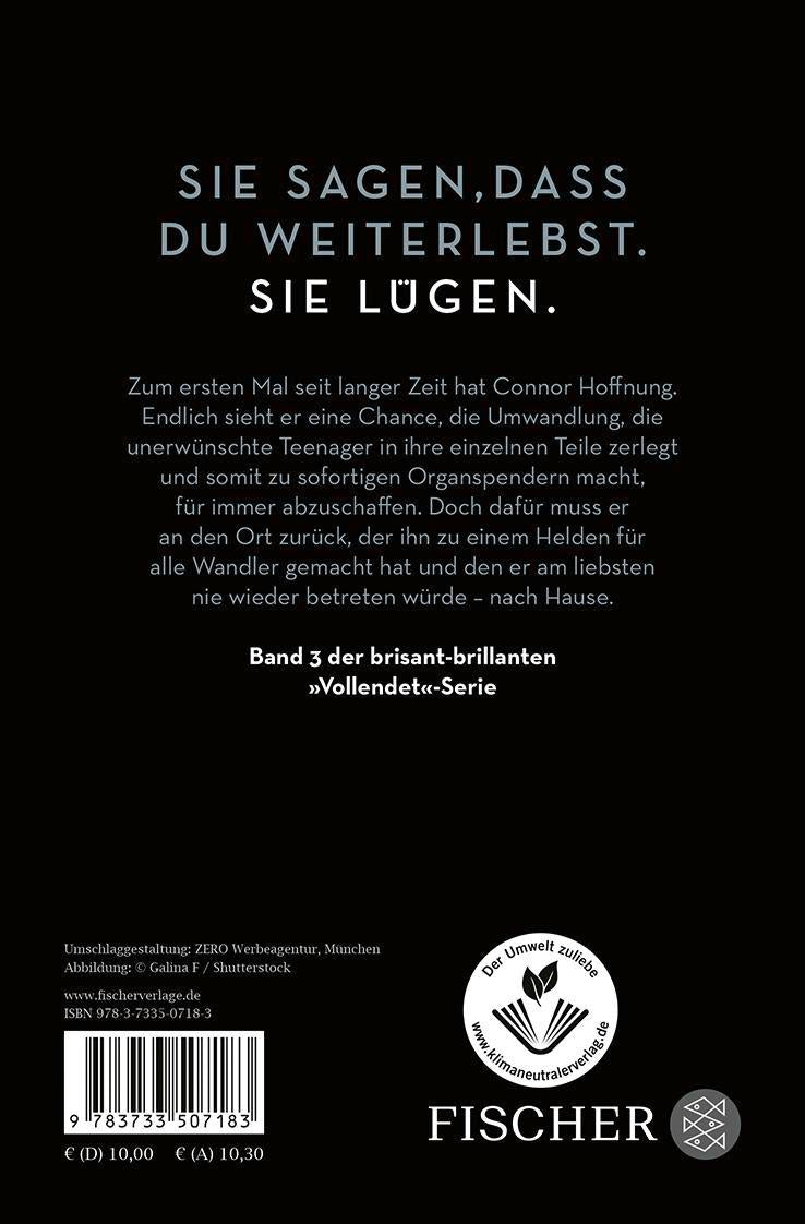 USA, die nahe Zukunft: Teenager, die zu viel Ärger machen, werden gnadenlos aus der Gesellschaft ausgestoßen und »umgewandelt«: Sie werden zu Organspendern - komplett, unumkehrbar und sofort. Connor und Risa sind ihrer Umwandlung entkommen. Zum ersten Mal seit ihrer Flucht sieht Connor eine Chance, die Umwandlungen für immer abzuschaffen. Doch dafür muss er an den Ort zurückkehren, den er am meisten fürchtet - nach Hause. Risa indes begegnet einem alten Bekannten, der in ihr die Hoffnung auf ein Leben weckt, das mehr bietet als den täglichen Kampf ums Überleben ...