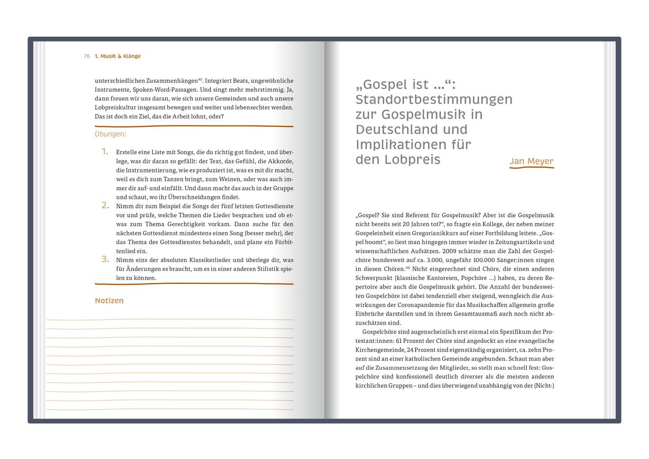 Weltweit berührt Lobpreis Menschen und prägt ihren Glauben. Längst hat er sich in Gemeinden neben klassischer Kirchenmusik mit Chorälen und Orgel etabliert. Gleichzeitig kann und muss Lobpreis sich weiterentwickeln und den vielfältigen Fragen des Lebens und Glaubens stellen. Genau dafür wirbt dieses Buch in Theorie und Praxis. Vom Worship-Schlager und Gospelsong über Spoken Word bis hin zu Kirchenkunst: Das Buch nimmt Lobpreis ganzheitlich in den Blick. In drei Bereichen - Musik, Theologie und Sprache - entfalten die Autor:innen ihren Blick auf Lobpreis und ergänzen sich gegenseitig zu einem tiefschürfenden Buch, das dieses gemeinderelevante Thema durchleuchtet und neue Ideen und Impulse für die Praxis gibt. Mit bekannten Autor:innen wie: Albert Frey, Arne Kopfermann, Lara Neumann, Thorsten Dietz, Jelena Herder, Marco Michalzik, Janina Crocoll, Martin Pepper, u.v.m. "Es kommt Bewegung und Perspektive in die Diskussion rund um das Thema Lobpreis. Statt pauschaler Verteidigung oder Kritik schauen wir nun genauer hin: Was ist stark an Lobpreis, was hat uns die 'Generation Lobpreis' zu sagen? Und wo braucht es Ergänzung, Korrektur, Weiterentwicklung? Das Buch ist ein wichtiger, vielschichtiger und äußerst lesenswerter Beitrag zur Diskussion und liefert wertvolle Impulse für die Praxis." (Albert Frey, Autor und Musiker)