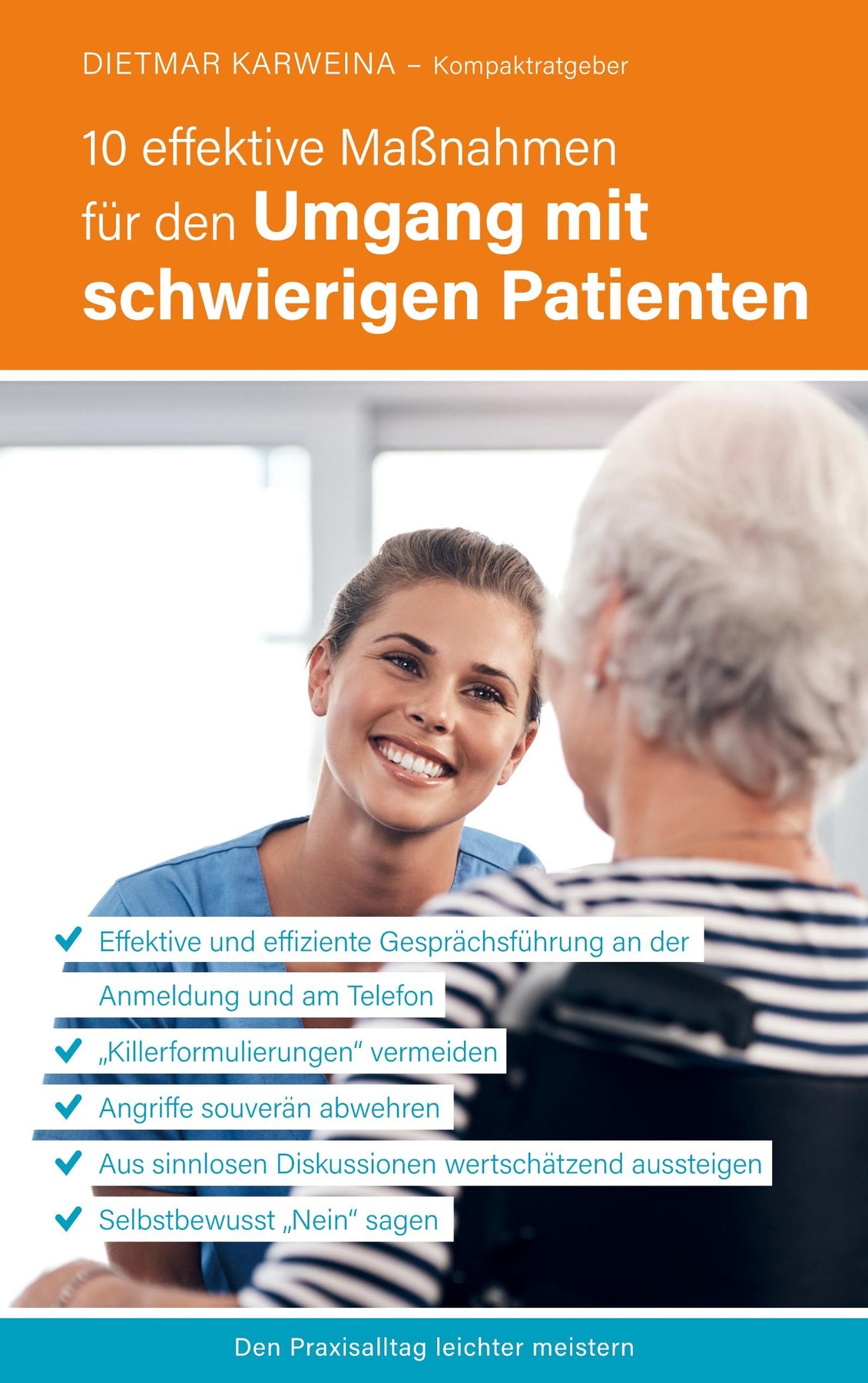 Praxismitarbeiterinnen stehen unter Druck: Ärgerliche Patienten mit anspruchsvollen Wünschen fordern das Praxisteam täglich heraus. Dietmar Karweina stellt in seinem Buch die besten Strategien vor, um die Kommunikation mit Patienten souverän zu gestalten. Das Ergebnis sind selbstbewusste Praxisteams, die ihre Patienten "aktiv" führen. Mit eingängigen Beispielen und griffigen Formulierungen sowie erprobten Werkzeugen aus seiner Coachingerfahrung in Arztpraxen sorgt er dafür, dass sich Praxismitarbeiterinnen sympatisch durchsetzen und Patienten sich an die Praxisgegebenheiten halten.