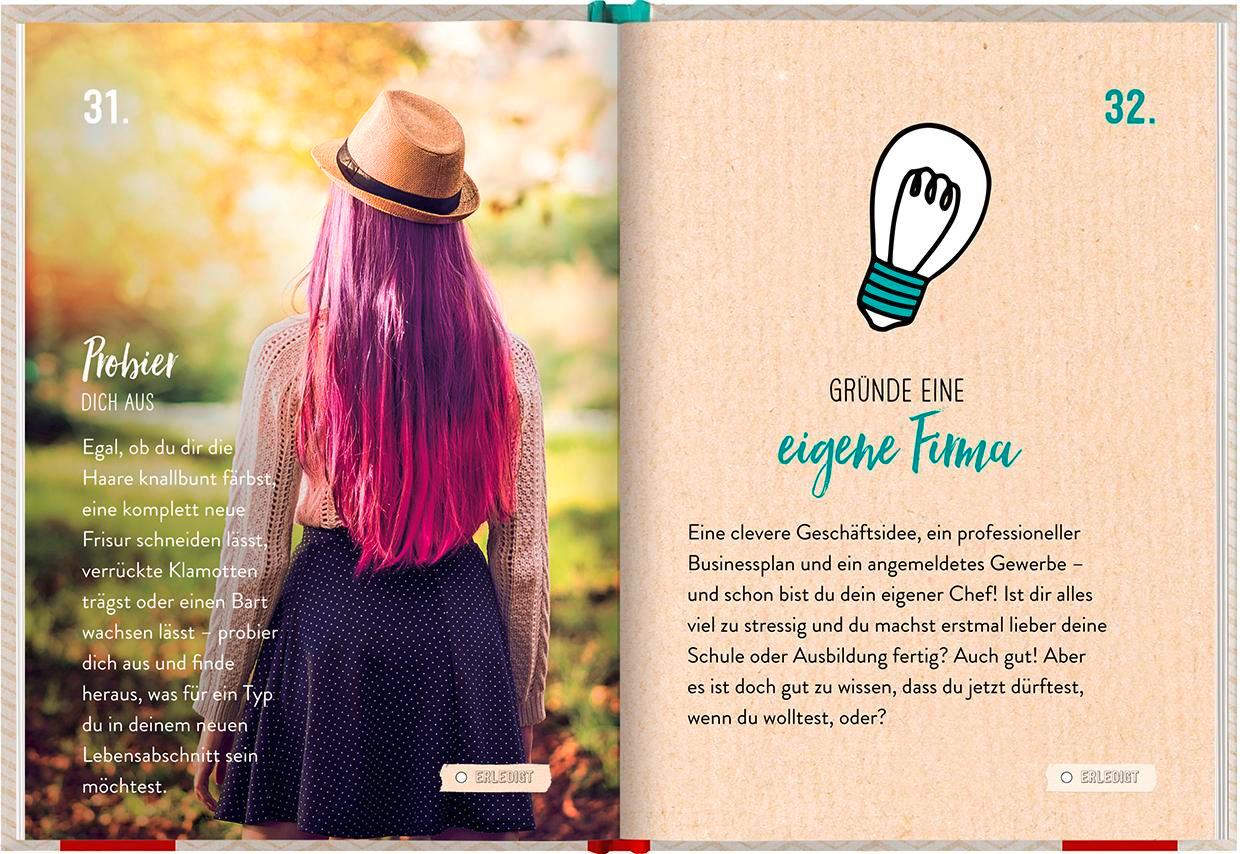 Tun und lassen, was man will. Blau machen, sich die Entschuldigung selbst schreiben, eine eigene Firma gründen, wählen gehen oder eine Probefahrt mit dem Traumauto machen. Diese und viele weitere Ideen für spannende, witzige und "erwachsene" Unternehmungen liefert die Fortsetzung der erfolgreichen 100 Dinge Reihe von GROH. Ein lustiges Geschenk für Sohn, Tochter oder Patenkind, das garantiert zum Schmunzeln anregt.