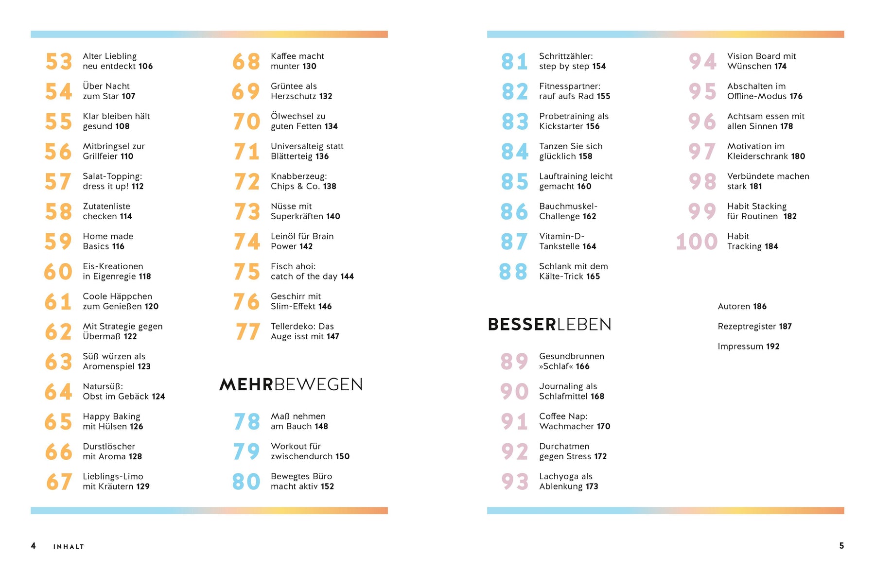 Ernährung umstellen, gesünder leben, ganz nebenbei auch noch das persönliche Wunschgewicht erreichen und halten - der renommierte Ernährungsmediziner und Bestseller-Autor Dr. Matthias Riedl zeigt, wie's geht! Mit 100 praxiserprobten und bewährten, aber auch neuen und überraschenden Tipps und Tricks und zahlreichen Rezeptbeispielen gibt er wirkungsvolle Impulse für ein schlankeres und gesünderes Leben und zeigt, was wirklich funktioniert, um Heißhunger zu besiegen, Blutzuckerspitzen zu vermeiden, Bauchfett zum Schmelzen zu bringen oder der Leber etwas Gutes zu tun. Mit vielen Rezeptbeispielen und jeder Menge Hintergrundwissen lädt dieses Buch ein zum Loslegen und Ausprobieren!