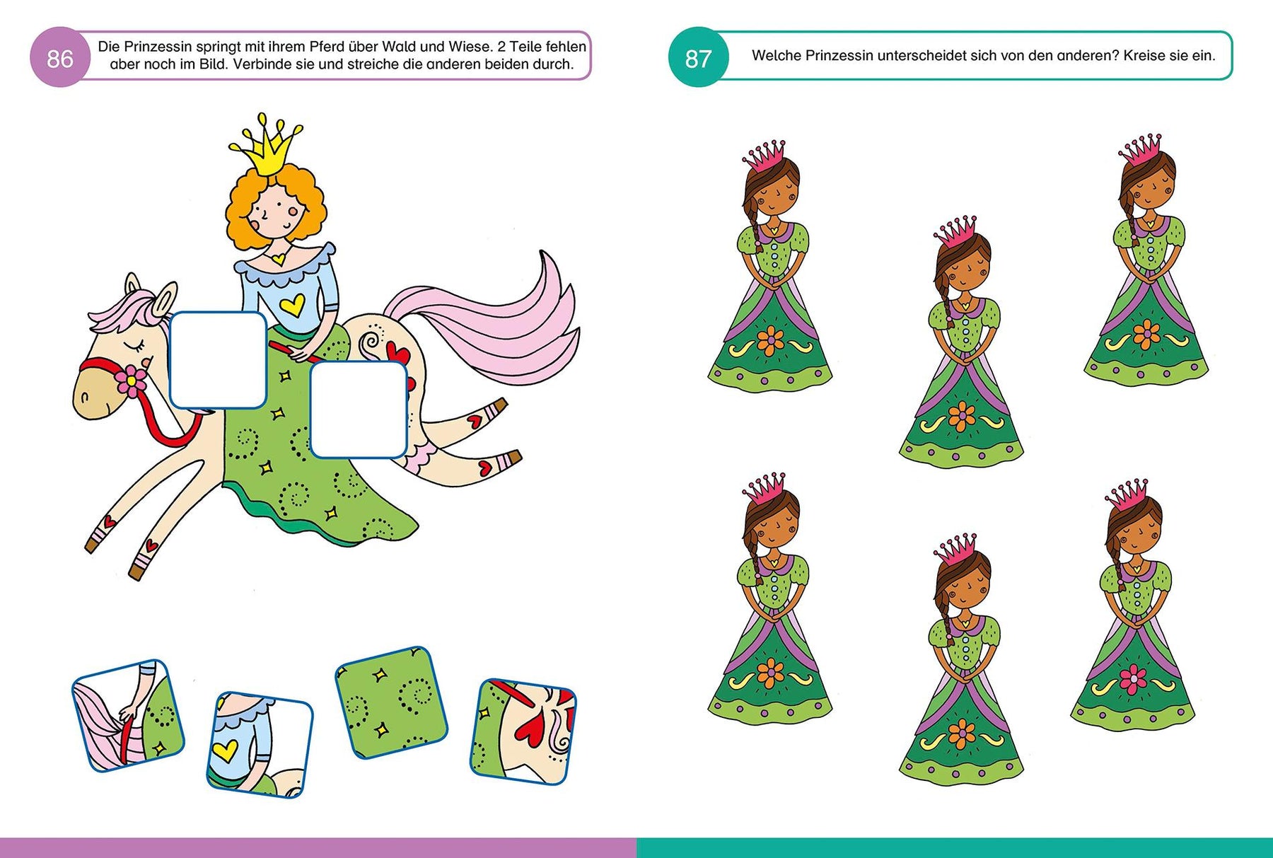Langeweile? Fehlanzeige! 100 knifflige Spiele warten darauf, von dir gemeistert zu werden. Ob Fehlersuche, Labyrinthe, Ausmalbilder oder Punkt zu Punkt - bei diesen 100 spannenden Rätseln kommt bestimmt keine Langeweile auf. Die Mischung aus Beschäftigung und Lernen sowie die bunten Bilder animieren Kinder ab 5 Jahren zum Rätseln und Malen und schulen ganz nebenbei Konzentration, Motorik und logisches Denken. - Malen, rätseln, knobeln und vieles mehr - Spielen und lernen in einem - Spielen und lernen rund um das Thema Prinzessinnen und Feen für Kinder ab 5