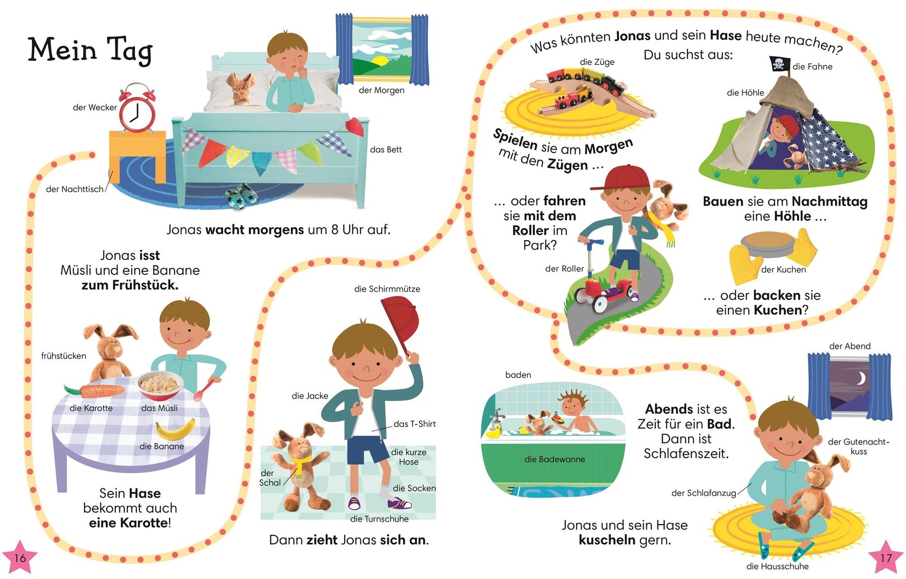 ¿ In einfachen, liebevollen Geschichten werden die Wörter in ganzen Sätzen verwendet und in Zusammenhang gesetzt.