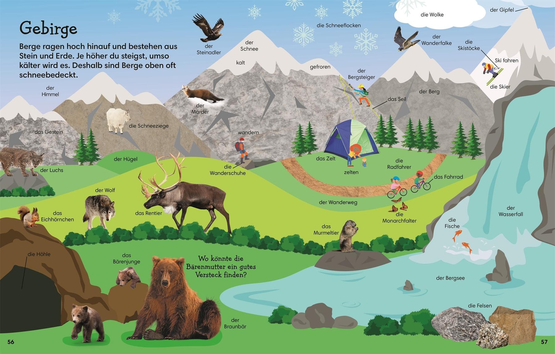 Sprechen lernen? Kinderspiel! Große farbenfrohe Illustrationen und eine besonders große Auswahl an Begriffen zum Thema Natur machen dieses kunterbunte Bildwörterbuch zum idealen Begleiter in Richtung Sprachförderung. Auf jeder Doppelseite werden die Begriffe thematisch sortiert und in Szenen verpackt. Das hilft Kindern, die neu erlernten Worte mit ihrer echten Welt zu verknüpfen. Alle Begriffe stehen immer mit Artikel - ein optimaler Support für Eltern mit Deutsch als Zweitsprache.