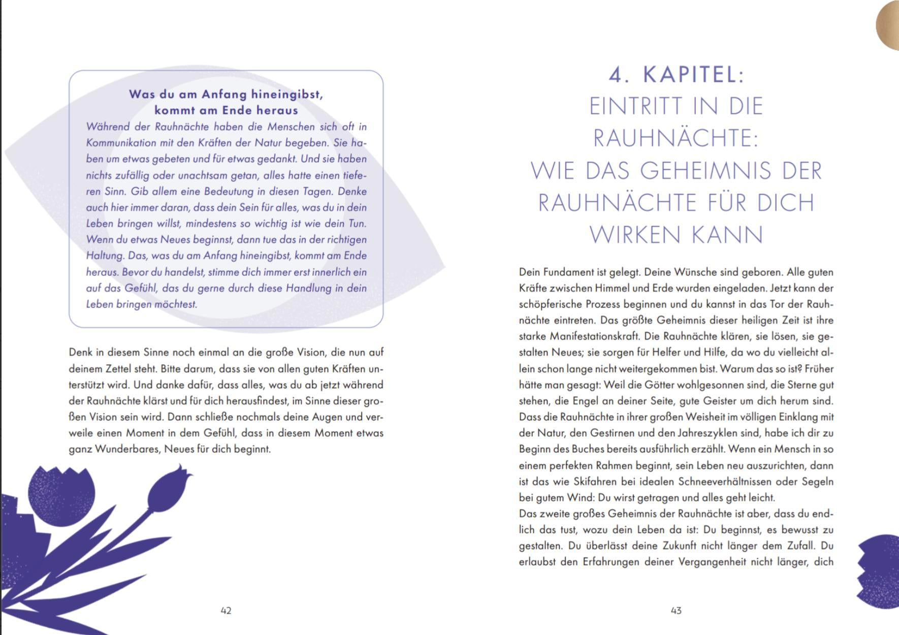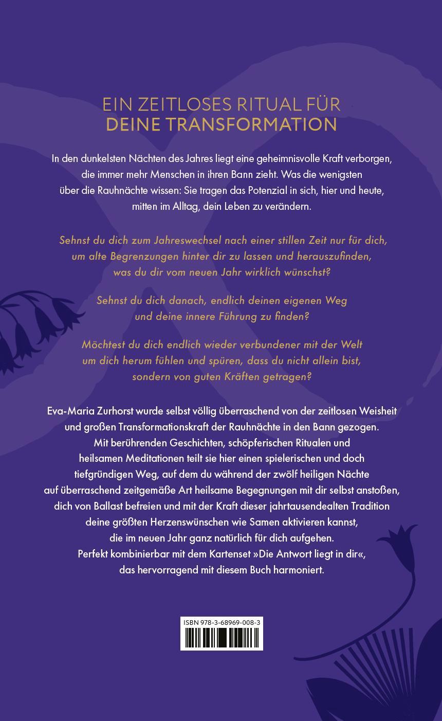 Dieses Buch führt dich nicht nur durch die Rauhnächte, sondern begleitet dich ein ganzes Jahr lang. Entdecke die transformative Kraft der Rauhnächte und erlebe nachhaltige Veränderungen in deinem Leben! - Sehnst du dich zum Jahreswechsel nach einer stillen Zeit nur für dich, um alte Begrenzungen hinter dir zu lassen und herauszufinden, was du dir vom neuen Jahr wirklich wünschst? - Sehnst du dich danach, endlich deinen eigenen Weg und deine innere Führung zu finden? - Möchtest du dich endlich wieder verbundener mit der Welt um dich herum fühlen und spüren, dass du nicht allein bist, sondern von guten Kräften getragen? Lass dich von Eva-Maria Zurhorst inspirieren, die selbst von der zeitlosen Weisheit und großen Transformationskraft der Rauhnächte verzaubert wurde. Mit berührenden Geschichten, schöpferischen Ritualen und heilsamen Meditationen zeigt sie dir, wie du während der zwölf heiligen Nächte und das gesamte Jahr hindurch heilsame Begegnungen mit dir selbst anstoßen und deine Herzenswünsche aktivieren kannst. Dieses liebevoll gestaltete Buch bietet Platz für deine Gedanken und Reflexionen und lässt sich ideal mit den Karten "Die Antwort liegt in dir" kombinieren, welche interaktiv mit dem Buch funktionieren. Verändere dein Leben jetzt und lasse deine größten Wünsche wahr werden!