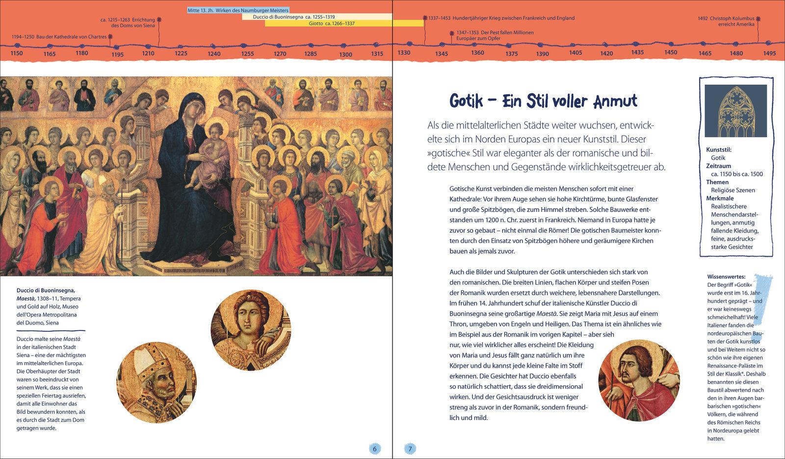 Wiedererkennen, einordnen, verstehen: Mit etwas Grundwissen über die verschiedenen Epochen und Stile wird Kunst zur spannenden Entdeckungsreise! Woran erkennt man, dass ein Bild in der Romanik und nicht in der Gotik gemalt wurde? Und wann war das? Was ist typisch für ein Renaissance-Gemälde? Warum war der Impressionismus revolutionär? Wer sind die wichtigsten Künstler der Pop Art? Jeder der 13 Kunststile wird mit seinen wichtigsten Merkmalen und Werken dargestellt und nimmt Bezug auf seine Blütezeit, optimal ergänzt durch ein umfangreiches Glossar und eine Zeitleiste.