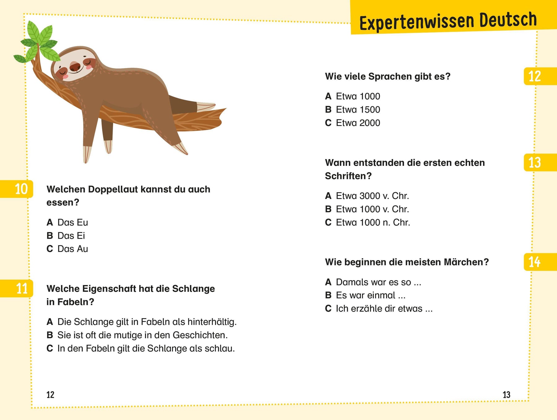 Welchen Doppellaut kannst du auch essen? Wie viele Sprachen gibt es? Welche beiden Zahlen versteht ein Computer? Warum sind Apfelmännchen kein Obst? Mit welcher Redewendung sparst du zu Hause Energie? Warum entstehen die Jahreszeiten? Mit fesselnden Sachthemen und faszinierenden Deutsch-, Mathe- und Englischfragen testen kleine Schlaufüchse ihr Grundschulwissen. 133 knifflige Quizfragen und ihre spannenden Antworten regen zum Knobeln und Nachdenken an. Genialer Rätselspaß, an dem nicht nur allein, sondern auch zu zweit, mit Freunden, Geschwistern, Eltern oder Großeltern getüftelt wird!