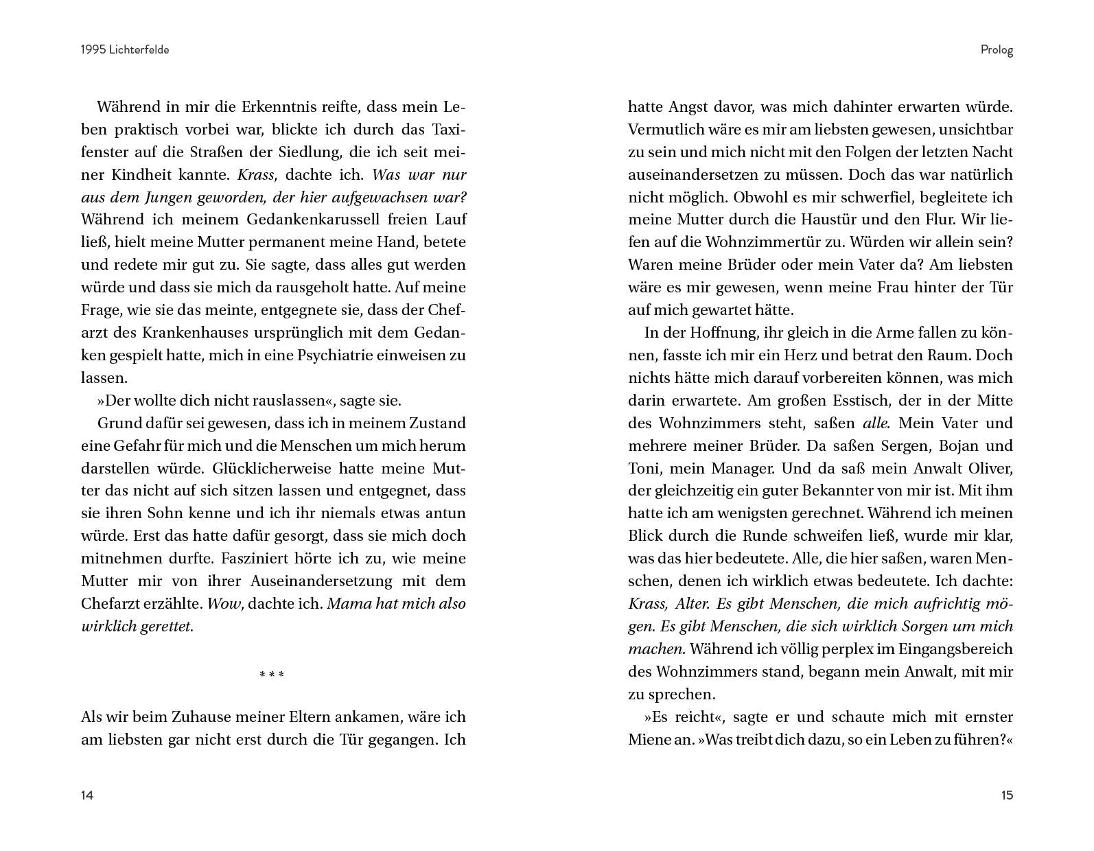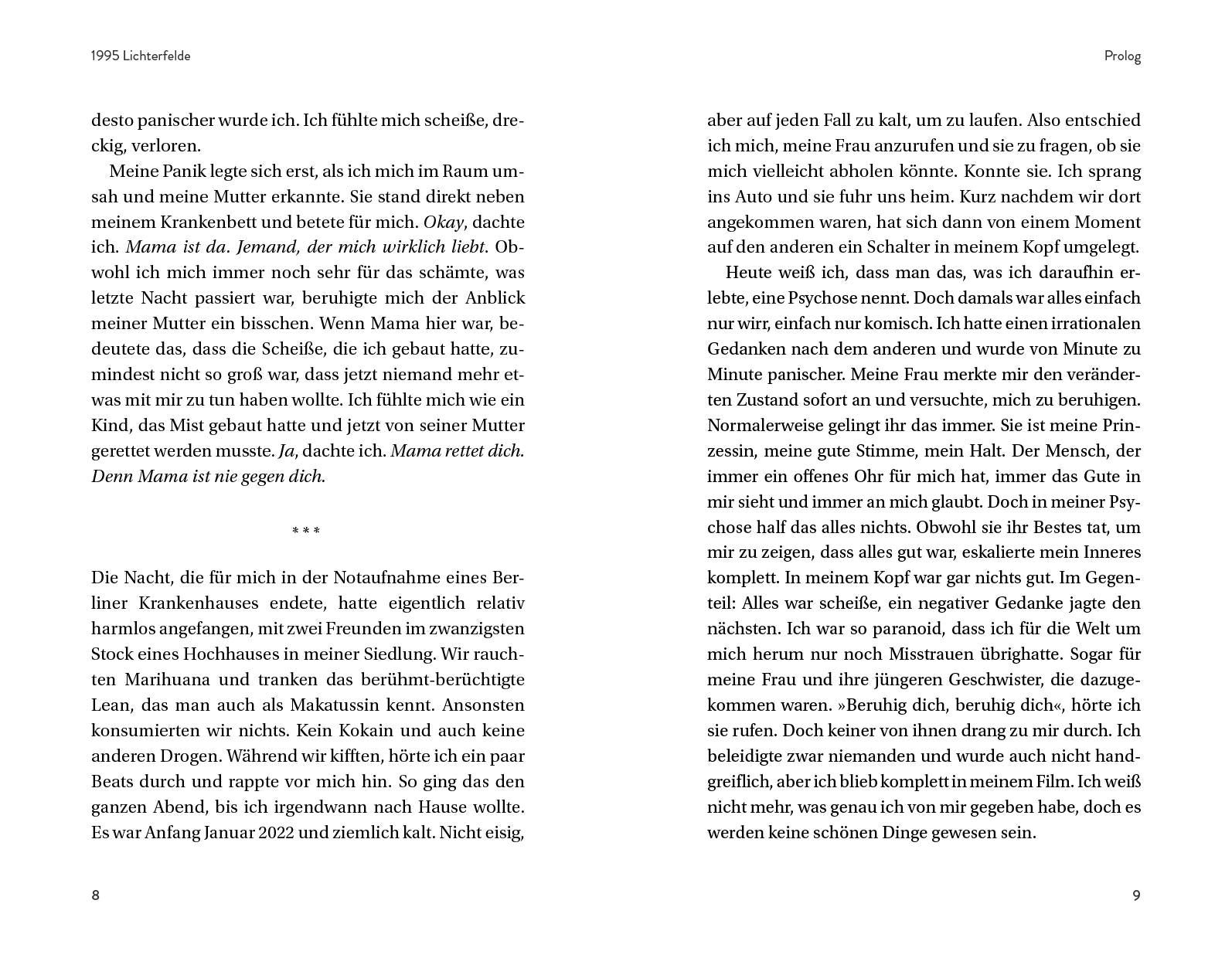 1995 kommt Hussein Akkouche als viertes von sechs Kindern einer Familie mit libanesischen Wurzeln in einer kalten, verschneiten Winternacht zur Welt. Aufgewachsen in den grauen Straßen von Berlin-Lichterfelde, muss er sich schon früh unter Älteren behaupten und trifft mit 13 Jahren eine Entscheidung, die sein Leben für immer verändert: Er beginnt zu rappen. Heute kennt ganz Deutschland Hussein unter dem Namen Samra. In seiner Autobiografie lässt er Erfolge und Rückschläge Revue passieren, blickt auf die von Krieg und Armut geprägte Vergangenheit seiner Familie zurück und setzt sich schonungslos ehrlich damit auseinander, wie die Schattenseiten des Musikgeschäfts ihn beinahe in den Suizid trieben. Es ist die bewegende Geschichte eines Jungen aus dem Herzen des Blocks, der früh auf eigenen Beinen stehen musste. Und der in jungen Jahren lernte, allen Widrigkeiten zu trotzen, die das Leben für ihn bereithält.