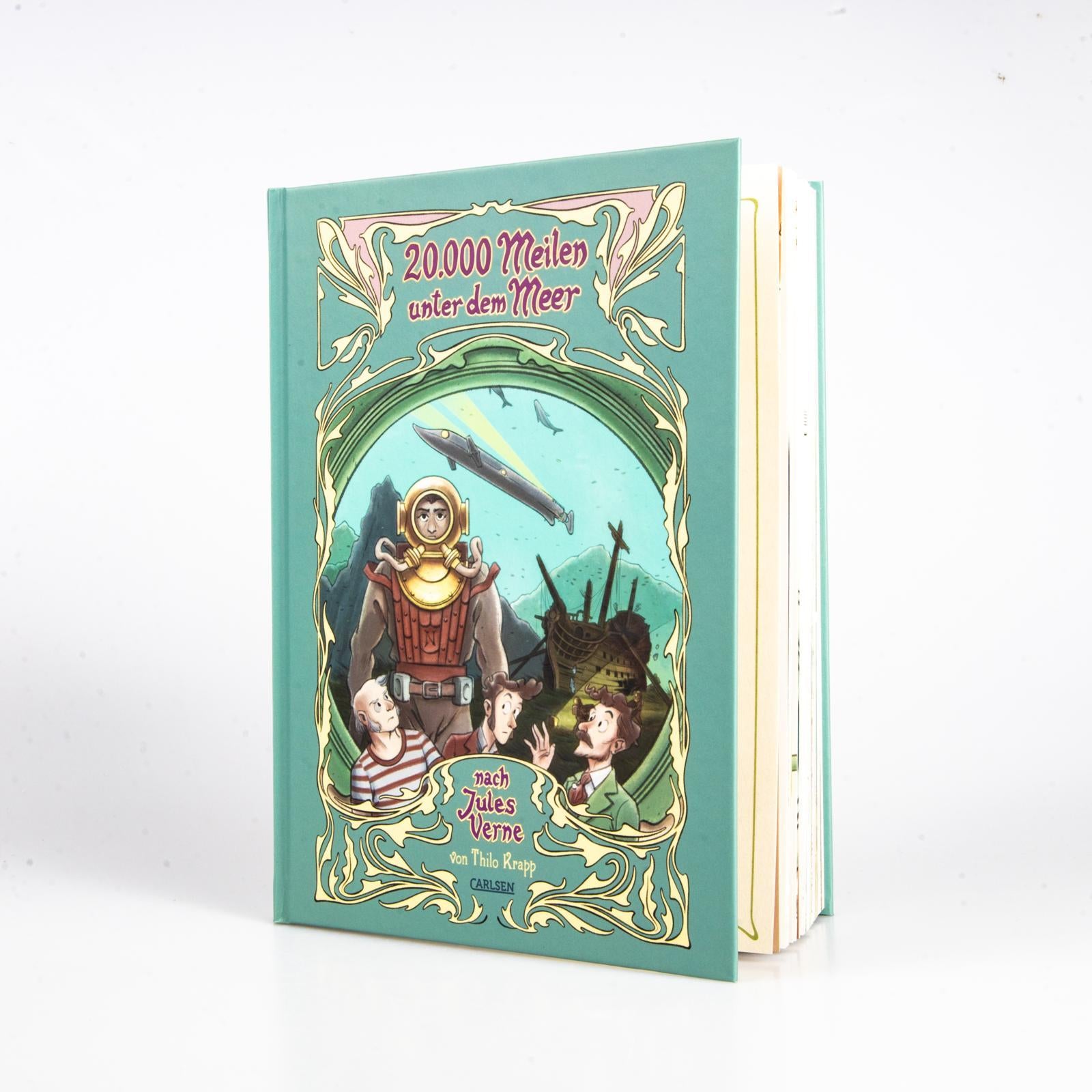 Von Thilo Krapp erschien bei Carlsen bereits seine kolorierte Ausgabe von »Der Krieg der Welten« . Mit »20.000 Meilen unter dem Meer« erscheint nun seine nächste großartig umgesetzte Literaturadaption. Er adaptiert dabei den Klassiker von Jules Verne nicht nur durch seinen Zeichenstil und seine helle Kolorierung grafisch ganz neu! Mit Blick auf ökologische Fragen ist »20.000 Meilen unter dem Meer« auch thematisch für unsere heutige Zeit brandaktuell .