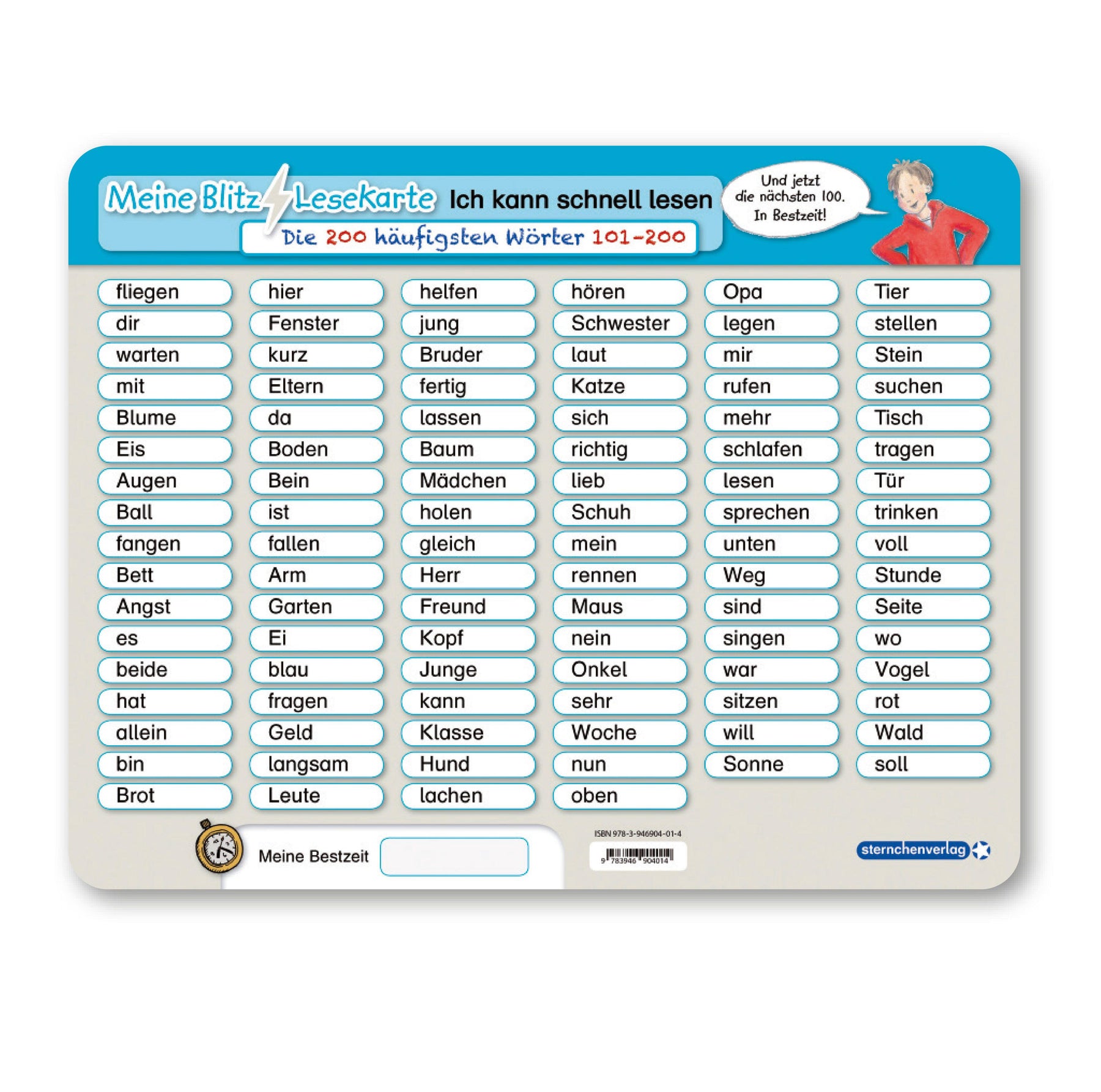 Meine Blitzlesekarte - Die 200 häufigsten Wörter - ISBN 978-3-946904-01-4