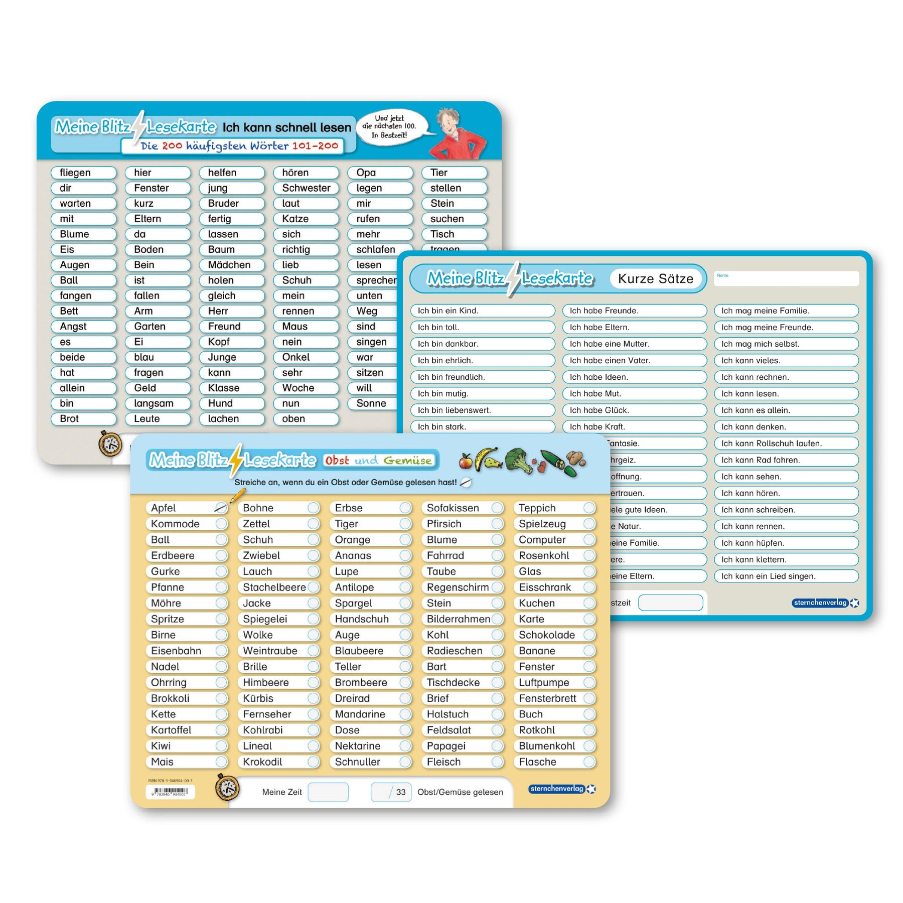 3 Blitzlesekarten im Set - 200 häufigste Wörter - Sätze - Suchwörter