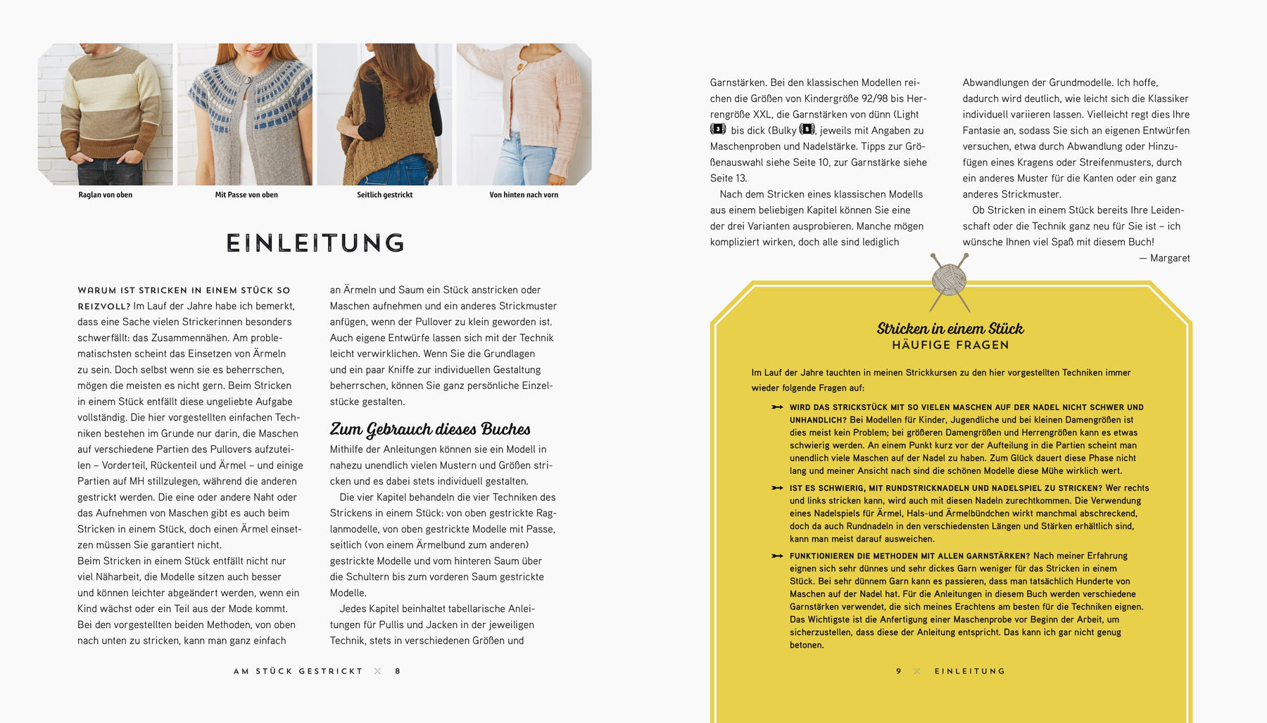 Die größte Herausforderung beim Stricken ist oft das Zusammennähen der Teile, vor allem das Einsetzen der Ärmel. Beim Stricken in einem Stück entfällt diese ungeliebte Aufgabe! Am Stück gestrickt zeigt, wie von drei verschiedenen Ausgangspunkten klassische Pullover und Jacken in einem Stück gestrickt werden können. Es enthält tabellarische Anleitungen für vier verschiedene Grundmodelle in allen Größen, vom Kleinkind bis zum Erwachsenen: . von oben nach unten: Beginn am Halsausschnitt für Raglanmodelle und Modelle mit Passe . seitlich gestrickt: von einem Ärmelsaum zum anderen . von hinten nach vorn: vom hinteren bis zum vorderen Saum; für die Ärmel werden an den Schultern Maschen aufgenommen Damit die verschiedensten Garne verwendet werden können, gibt es für jedes Grundmodell und alle Größen jeweils eine Anleitung für verschiedene Garnstärken von dünn bis dick. Noch kreativere Möglichkeiten bieten die zu jedem Grundmodell vorgestellten drei Varianten, die mit Mustern, Farben und Details wie Halsausschnitt oder Ärmeln spielen. Hilfreiche Tipps zu verschiedenen Grundtechniken runden das Ganze ab.