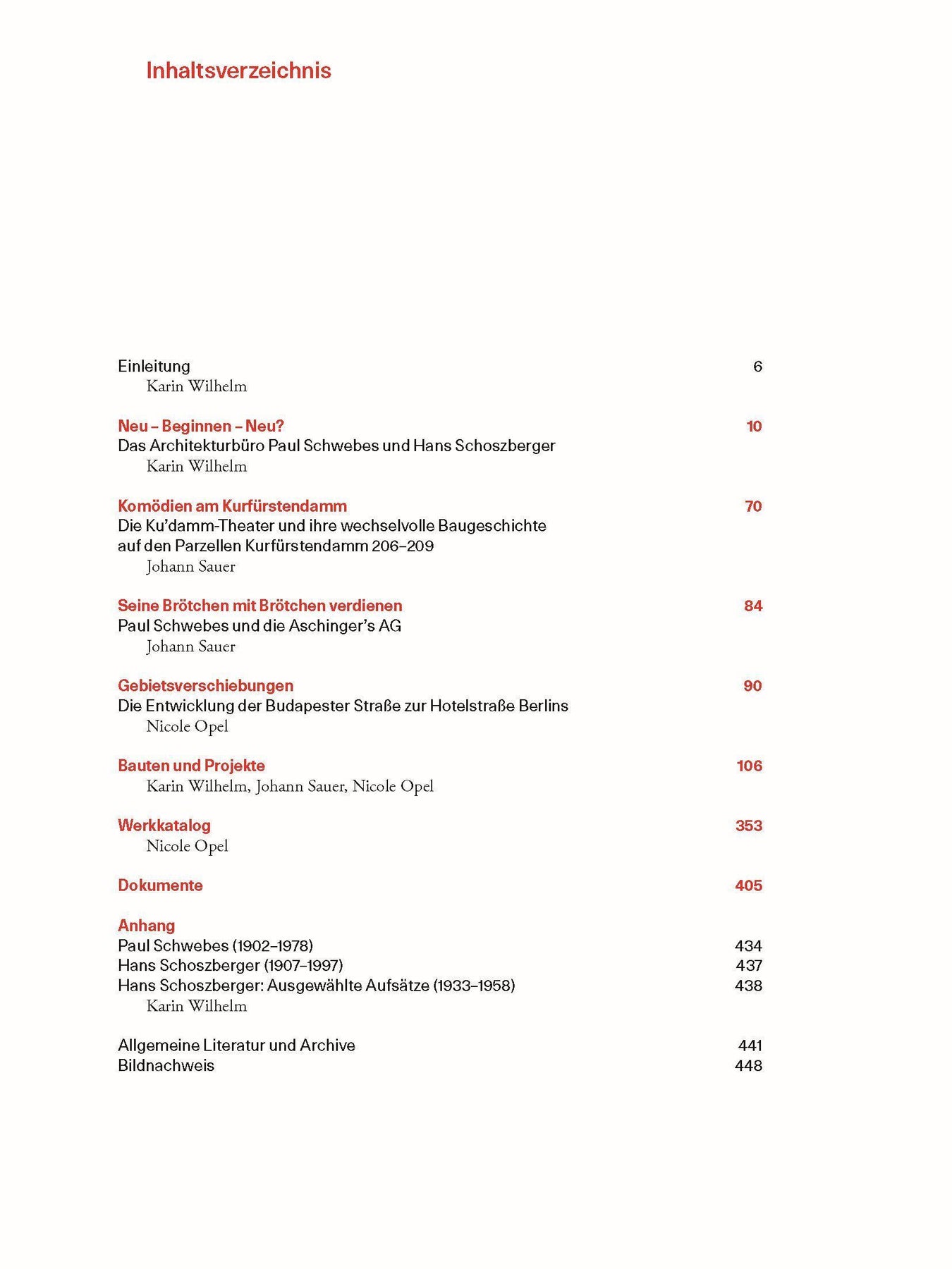 Two architects have largely escaped notice in literature on the reconstruction of postwar (West) Berlin, despite their long-lasting legacy in shaping its architectural fabric: Paul Schwebes and Hans Schoszberger, who have worked together in a joint office since 1956. Several of their buildings still stand as emblematic of Berlin's City West, shaping its urban flair between Kurfürstendamm and Tauentzienstraße, Ernst-Reuter-Platz and Breitscheidplatz, in Budapester Straße and in other districts. Reconstructing over 160 projects from Berlin's pre- and postwar years, mainly from the tertiary sector with a smaller number of residential buildings, the volume also uncovers the political and economic conditions that allowed this architecture to become symbols of a new era and an open society after 1945.