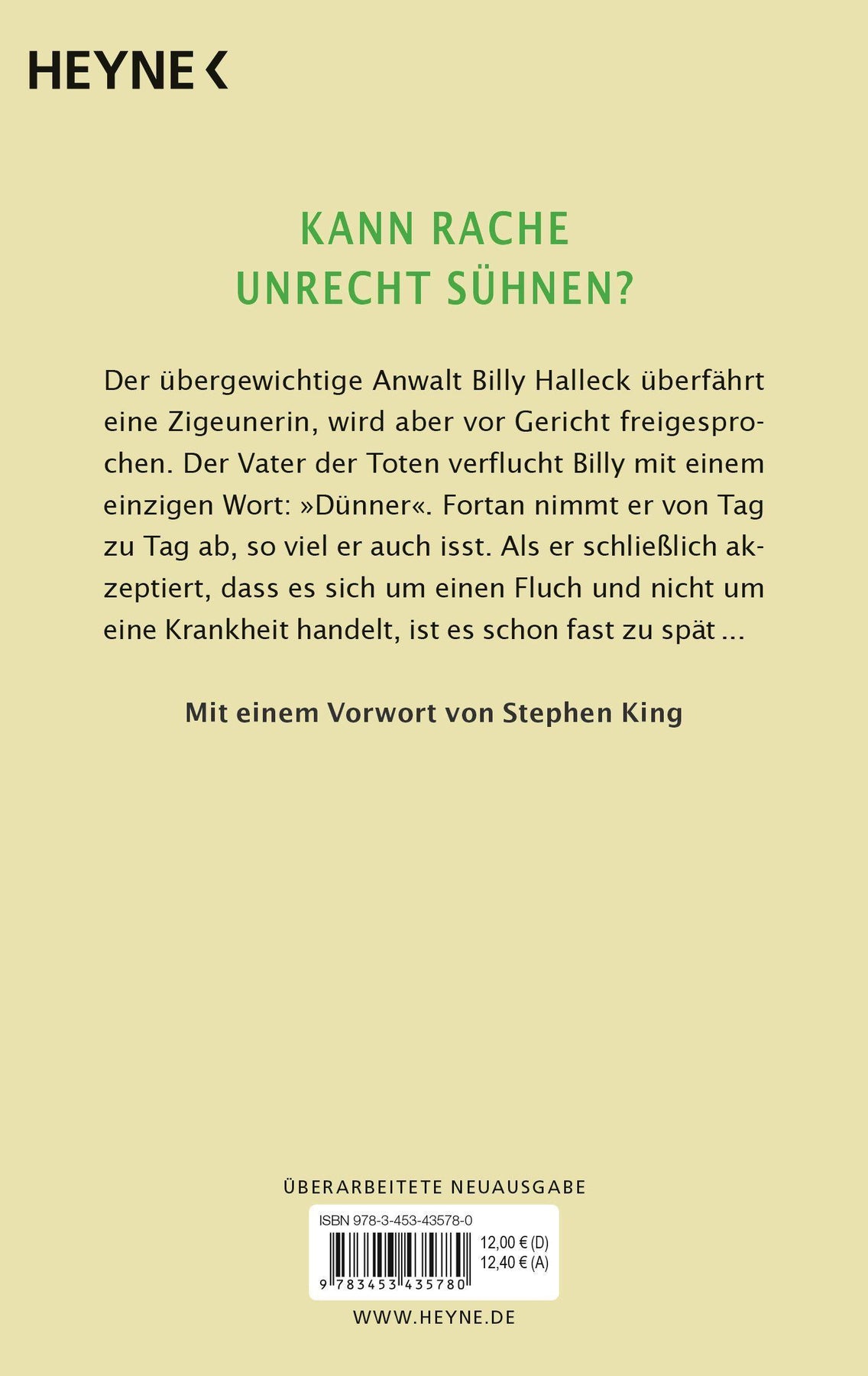Der übergewichtige Anwalt Billy Halleck überfährt eine Zigeunerin, wird aber vor Gericht freigesprochen. Der Vater der Toten verflucht Billy mit einem einzigen Wort: 'Dünner'. Fortan nimmt er von Tag zu Tag ab, so viel er auch isst. Erst freut er sich darüber, doch bald ergreift ihn die Panik. Als er schließlich akzeptiert, dass es sich um einen Fluch und nicht um eine Krankheit handelt, ist es schon fast zu spät ...