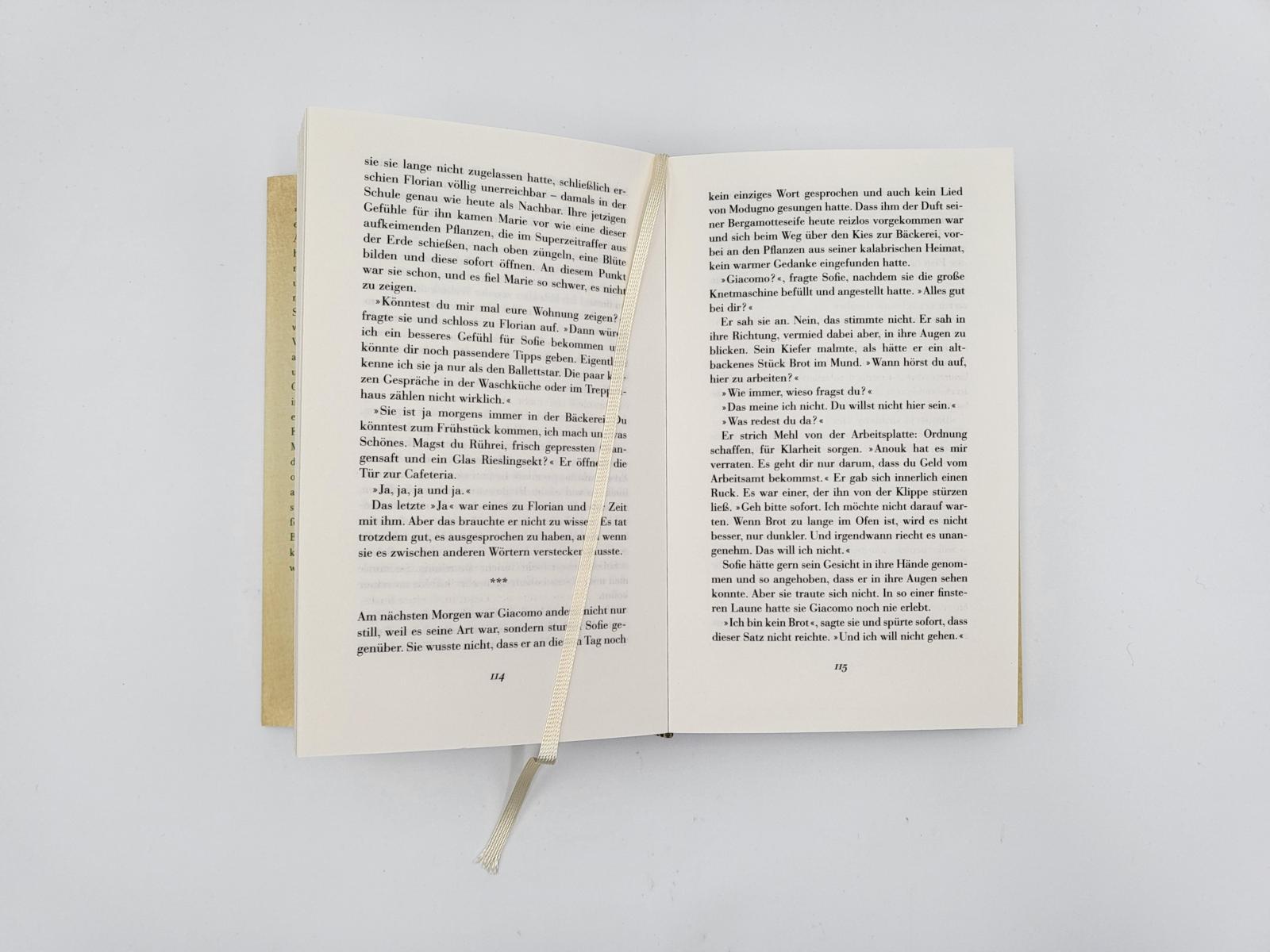 Brot backen ist fast wie ein Tanz. Teig wird rhythmisch geknetet, die Drehung der Hände, der Schwung der Hüfte geben ihm Geschmeidigkeit. Fasziniert beobachtet die ehemalige Tänzerin Sofie den italienischen Bäcker Giacomo bei seiner Arbeit. Eigentlich wollte sie den Aushilfsjob in der Dorfbackstube gleich wieder kündigen. Zu sehr hat das Ende ihrer Karriere ihr Leben aus der Bahn geworfen. Wer ist sie, wenn sie nicht tanzt? Wer wird sie lieben, wenn sie nicht mehr auf der Bühne strahlt? Doch überraschend findet Sofie in der kleinen Bäckerei viel mehr als nur eine Beschäftigung: die Weisheit eines einfachen Mannes, das Glück der kleinen Dinge und den Mut zur Veränderung.