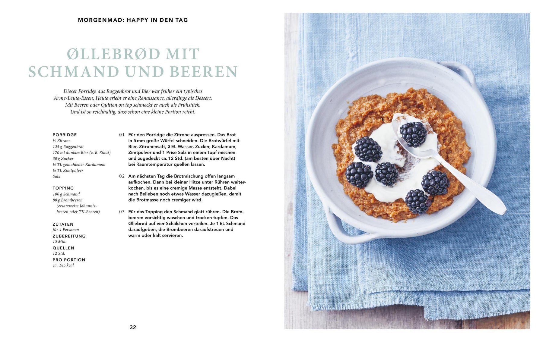 Der Tag geht schon ganz hyggelig los - man nimmt sich viel Zeit für ein ausführliches Frühstück. Ein wärmendes Porridge im Winter, wenn die Tage kurz sind, Sauerteigwaffeln mit Beeren im Sommer und den Klassiker Omelett mit Lachs und Dill kann man sowieso immer genießen. Die Rezepte sind oft süß inspiriert und mit klassischen dänischen Zutaten wie Beeren, Roggenbrot und Lachs kombiniert. Schon in 15 Minuten können Sie sich so ganz viel Norden auf den Teller zaubern.