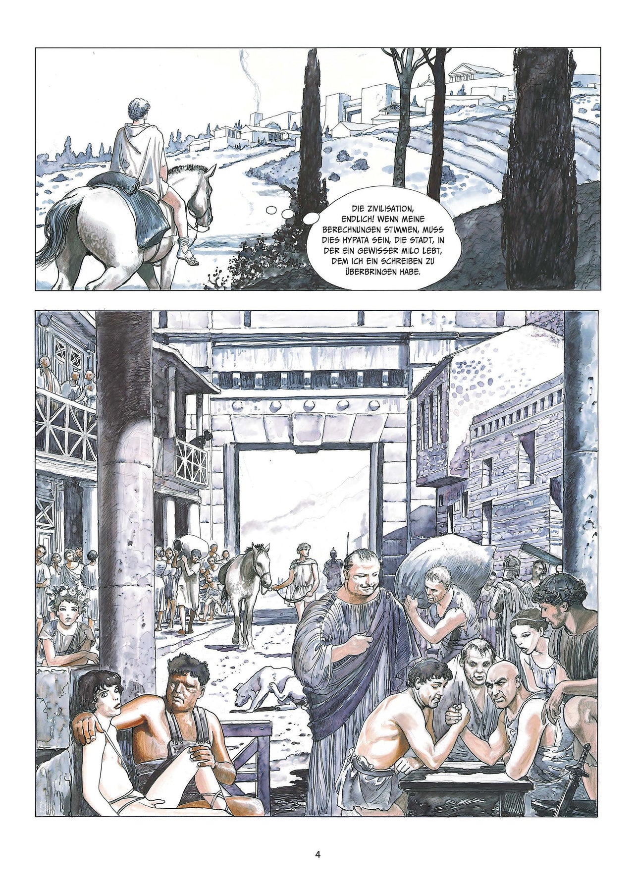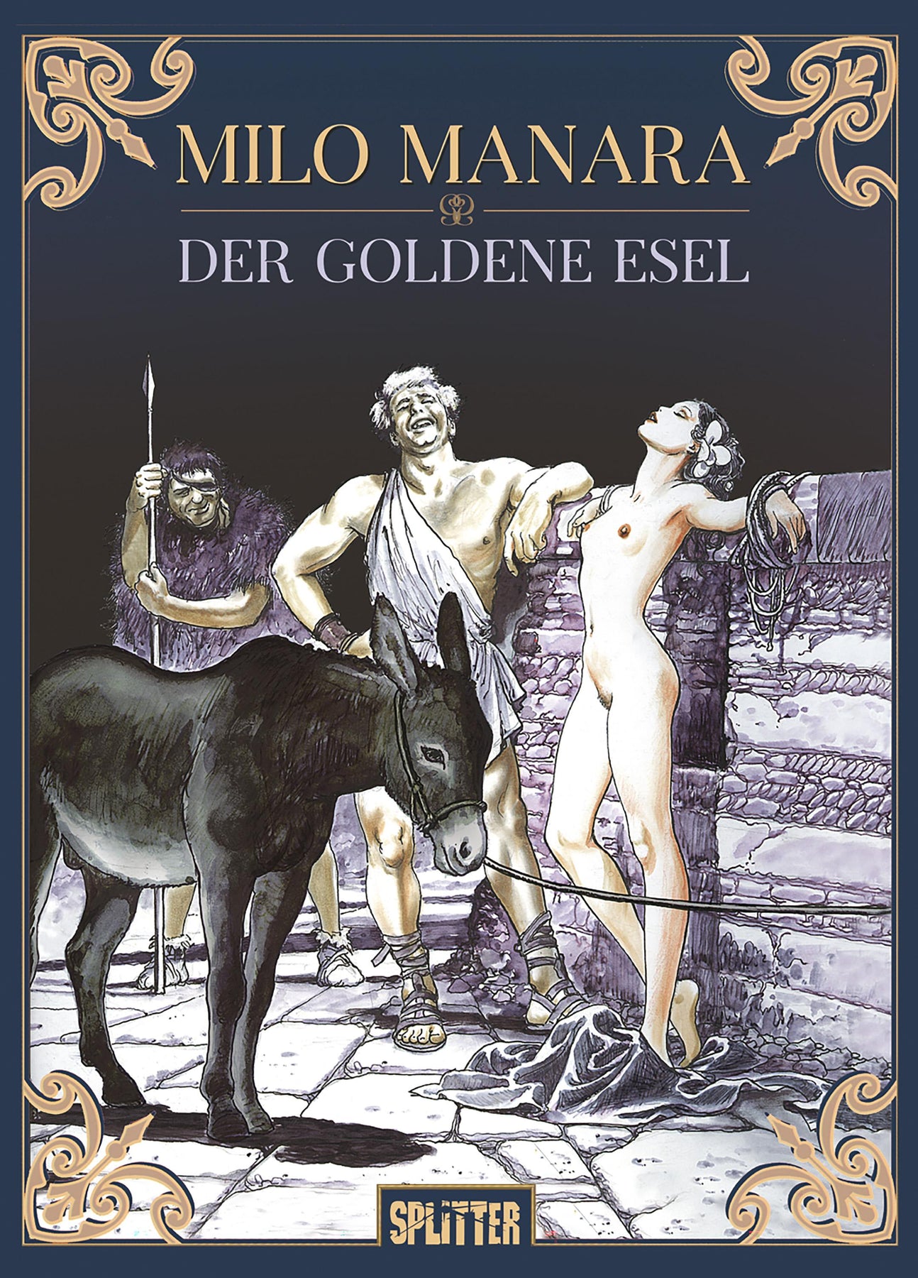 Auf einer Geschäftsreise nach Thessalien gerät der junge Lucius aus Neugierde an Hexerei in eine peinliche Situation: Er wird in einen Esel verwandelt. Bevor er zurückverwandelt werden kann, kommt er vom Regen in die Traufe und wird von Räubern entführt und als Lasttier benutzt. Auf seiner erzwungenen Wanderschaft muss Lucius schwere Strapazen überstehen, aber seine neue Form ermöglicht ihm auch einzigartige Einblicke in das Treiben seiner Mitmenschen... Milo Manaras Adaption von Apuleius' 'Der goldene Esel' zählt zu seinen herausragendsten Werken. Dieses erotische Märchen kennt keine Tabus, verbindet spielerisch Elemente des Unheimlichen mit Komik und Philosophie und illustriert Manaras Können auf dem Höhepunkt seines Schaffens. Dieses Buch ist 'Splitternackt' - ein erotischer Comic. Beinhaltet einen exklusiven Kunstdruck.