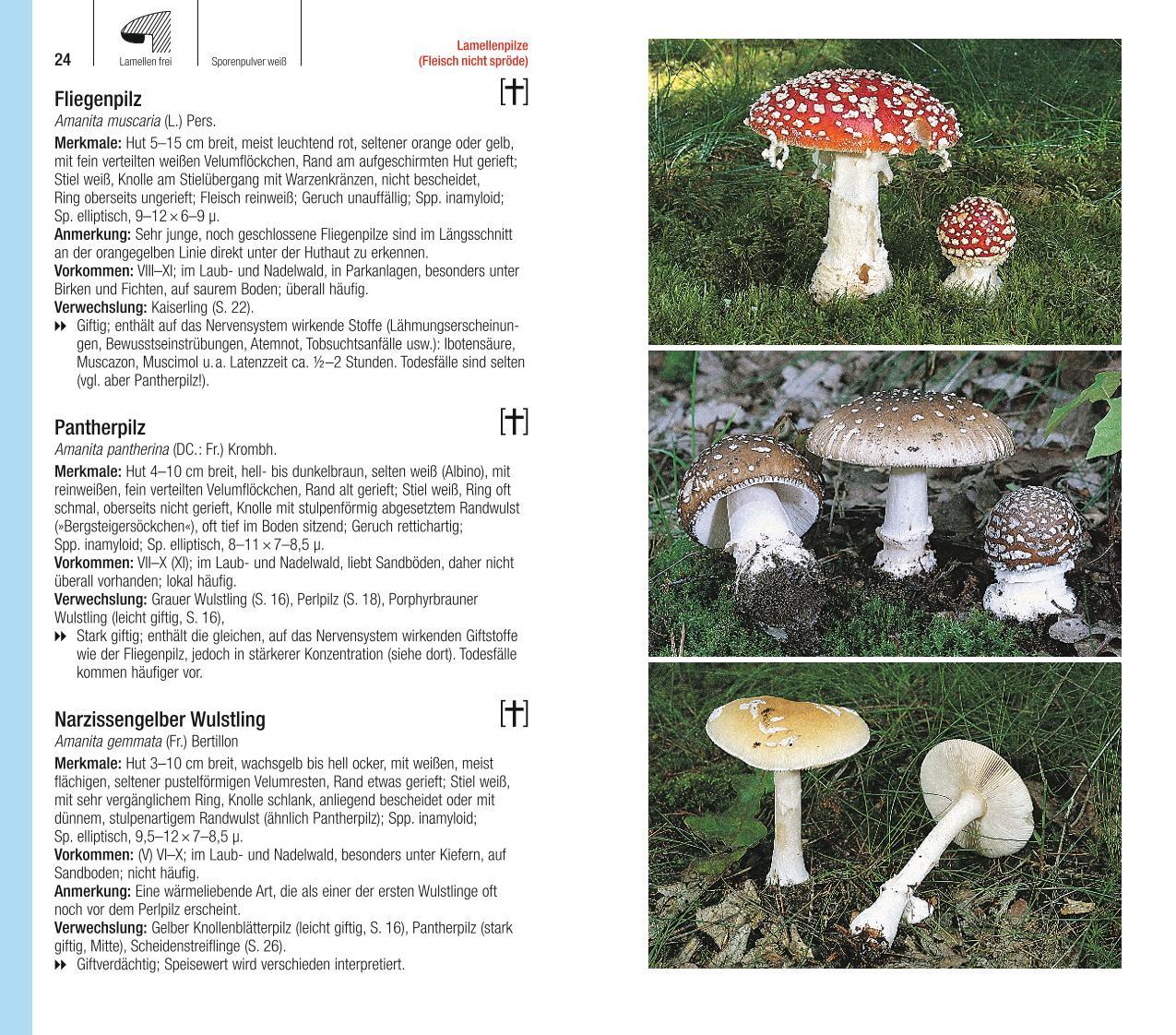 Die Bestimmungstexte informieren über deutsche und wissenschaftliche Namen, Speisewert, Merkmale, Vorkommen, Biologie, Verwendung und weisen auf Giftwirkung und Verwechslungsgefahr hin.