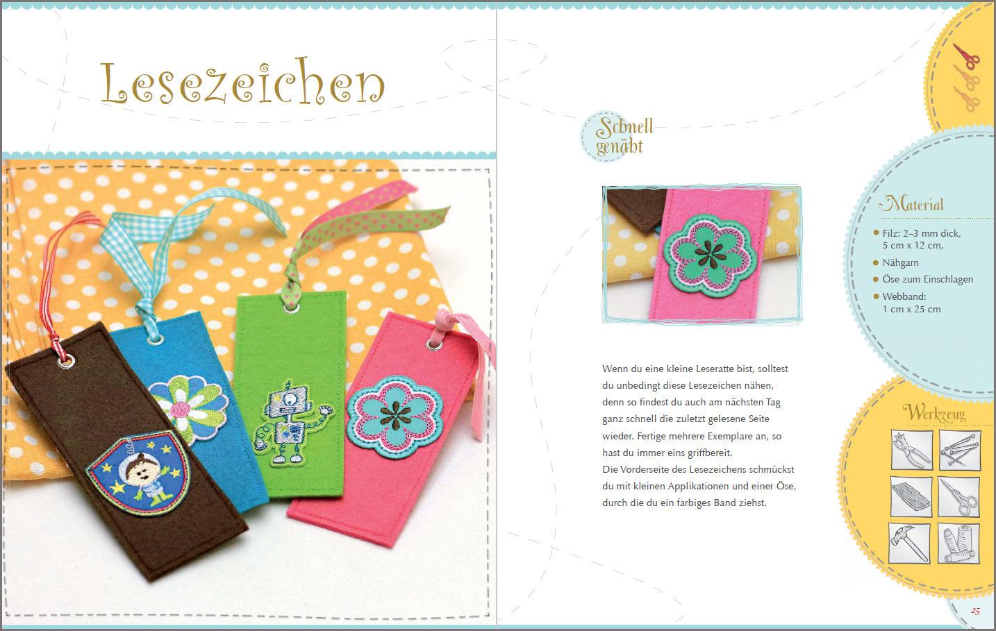 Ob kleine Geschenke für die beste Freundin, tolle Accessoires für das eigene Outfit oder ein Hingucker im Zimmer: Die 33 Modelle sind kinderleicht nachzuarbeiten, denn jeder Schritt wird genau erklärt und in Zeichnungen gezeigt. Nähbasics, Infos zur Nähmaschine, Werkzeug- und Materialkunde fehlen ebensowenig wie Vorlagen.