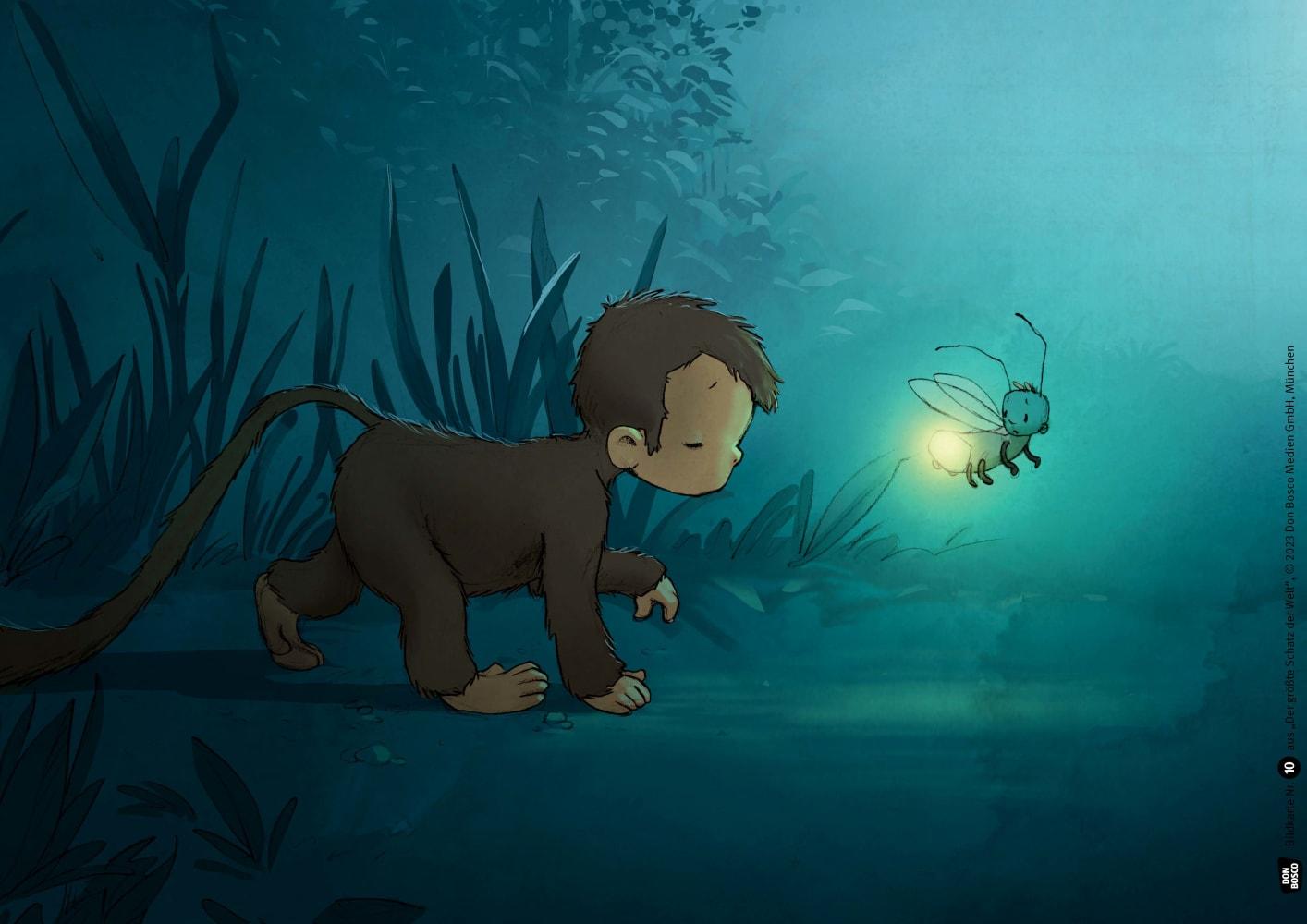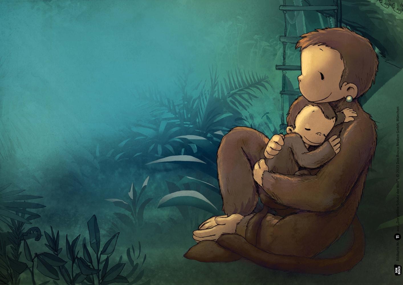 Rastlos streift Affenkind Mono durch den Regenwald: Für die Mama möchte er einen ganz besonderen Schatz finden. Statt Gold und Edelsteinen erwartet ihn jedoch die bunte Tierwelt des Dschungels. Voller neuer Erfahrungen, aber ein wenig enttäuscht kehrt Mono zurück - und stellt fest, dass seine Mutter ihren wahren Schatz schon längst vermisst hat ...