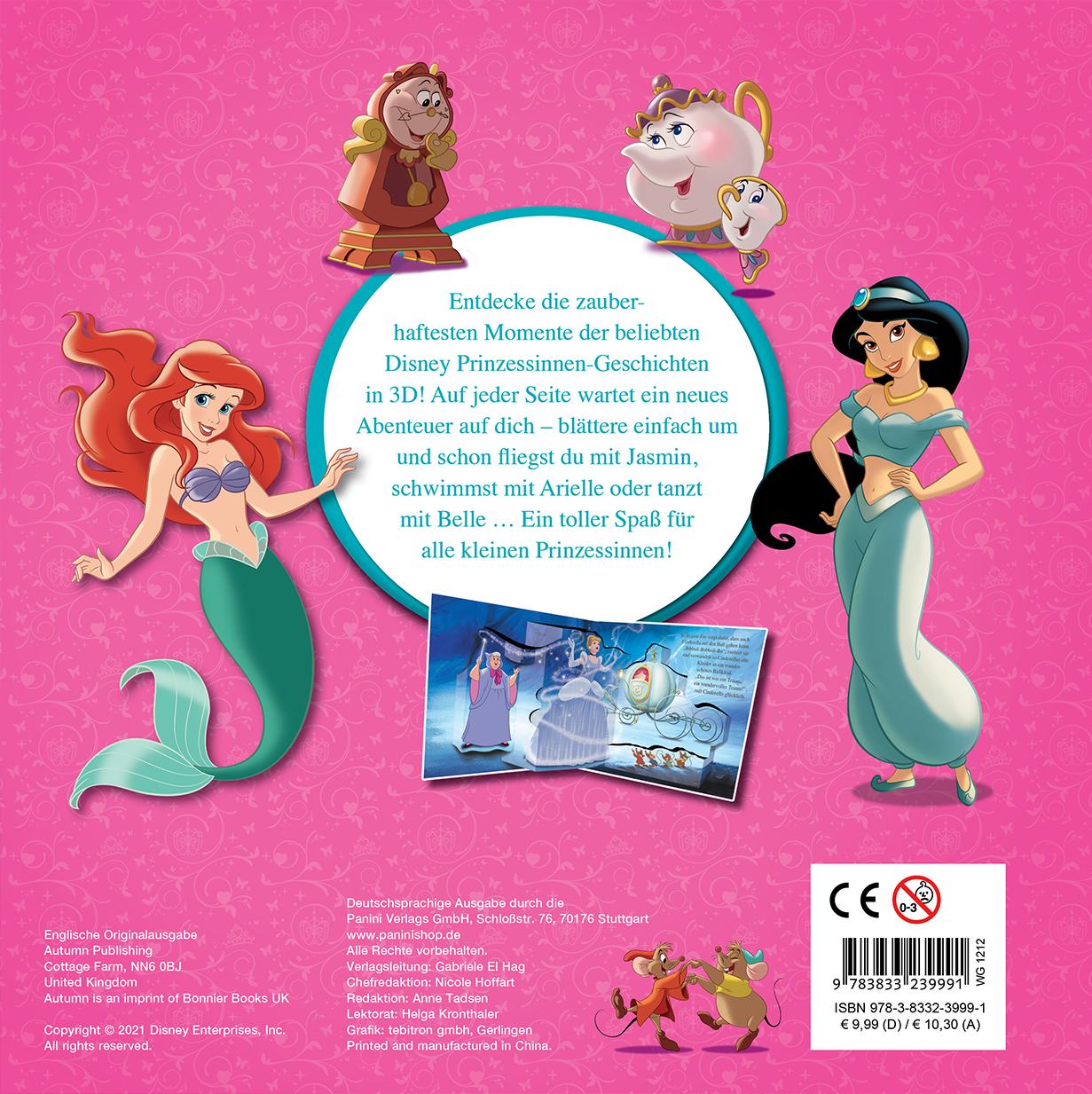 Entdecke die zauberhaftesten Momente der beliebten Disney Prinzessinnen-Geschichten in 3D! Auf jeder Seite wartet ein neues Abenteuer auf dich - blättere einfach um und schon fliegst du mit Jasmin, schwimmst mit Arielle oder tanzt mit Belle ... Ein toller Spaß für alle kleinen Prinzessinnen!