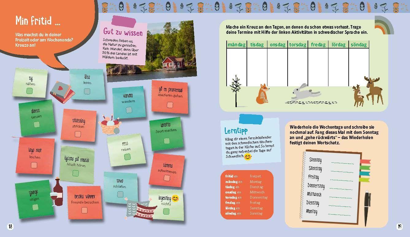 - Mit Wohlfühlfaktor Schwedisch lernen: Wenig Grammatik, dafür aber mit zahlreichen abwechslungsreichen Übungen und Inhalten, kombiniert mit stimmungsvollen Fotos und Illustrationen aus der nordischen Welt!