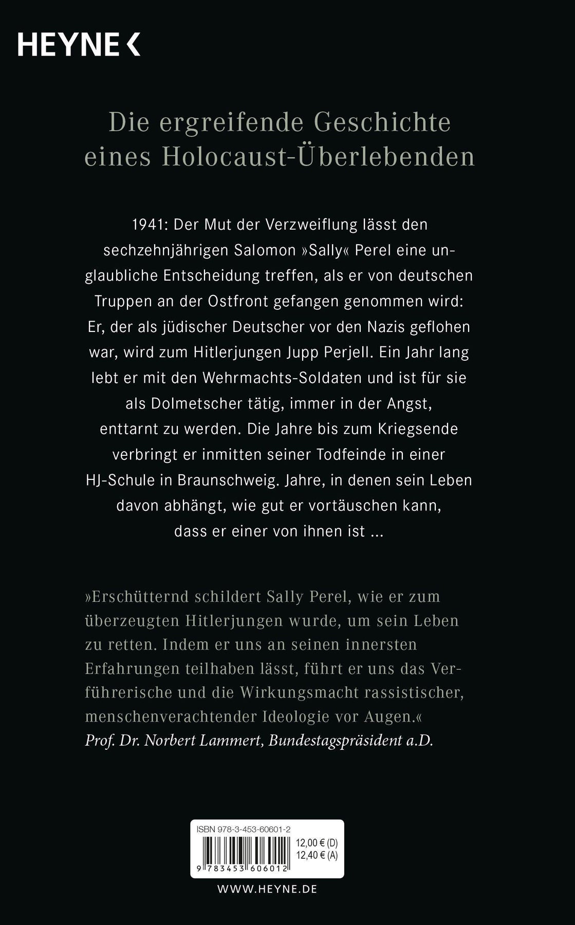 Sally Perel ist sechzehn, als er 1941 von den Nazis gefangengenommen wird. Er ist Jude und schon seit Jahren auf der Flucht. Er weiß, dass er nur eine Chance hat: seine Papiere entsorgen und eine andere Identität annehmen. Der Mut der Verzweiflung macht aus ihm Jupp Perjell, das jüngste Mitglied der deutschen Wehrmacht. Ein Jahr lang lebt er mit den Soldaten an der Ostfront und unterstützt sie als Dolmetscher. Danach schickt man ihn nach Braunschweig, wo er bis Kriegsende inkognito in einem Internat der Hitlerjugend bleibt...