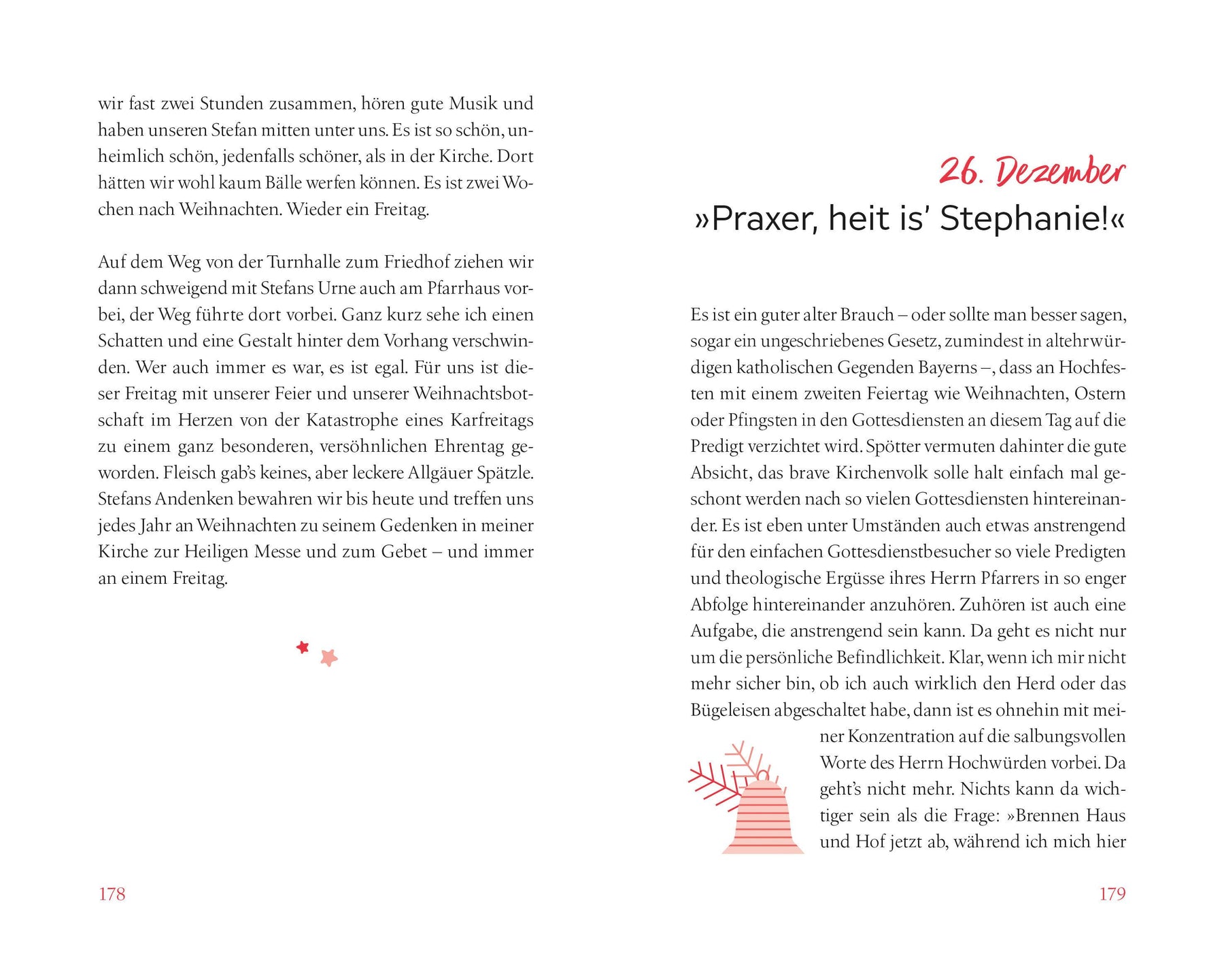Rainer Schießler jedenfalls ist absoluter Weihnachtsfan und teilt in diesem Buch seine persönlichsten und rührendsten Geschichten rund um den Advent, das Weihnachtsfest bis hin zum Dreikönigstag: Er erzählt vom Gefühlschaos, das er als Kind erlebte, wenn der Nikolaus sich ankündigte und von der tiefen Geborgenheit, wenn er am kleinen Küchenfenster kauernd, vom knisternden Ofen gewärmt, in den dunklen Advent hinausschaute. Er berichtet davon, dass es Plätzchen dieser Tage auch nicht leicht haben. Schießler weiß aber auch, was es bedeutet, wenn sich Weihnachtsfreuden in Tragödien wandeln, wenn er am 23.12. zu letzten Ölungen gerufen wird ...
