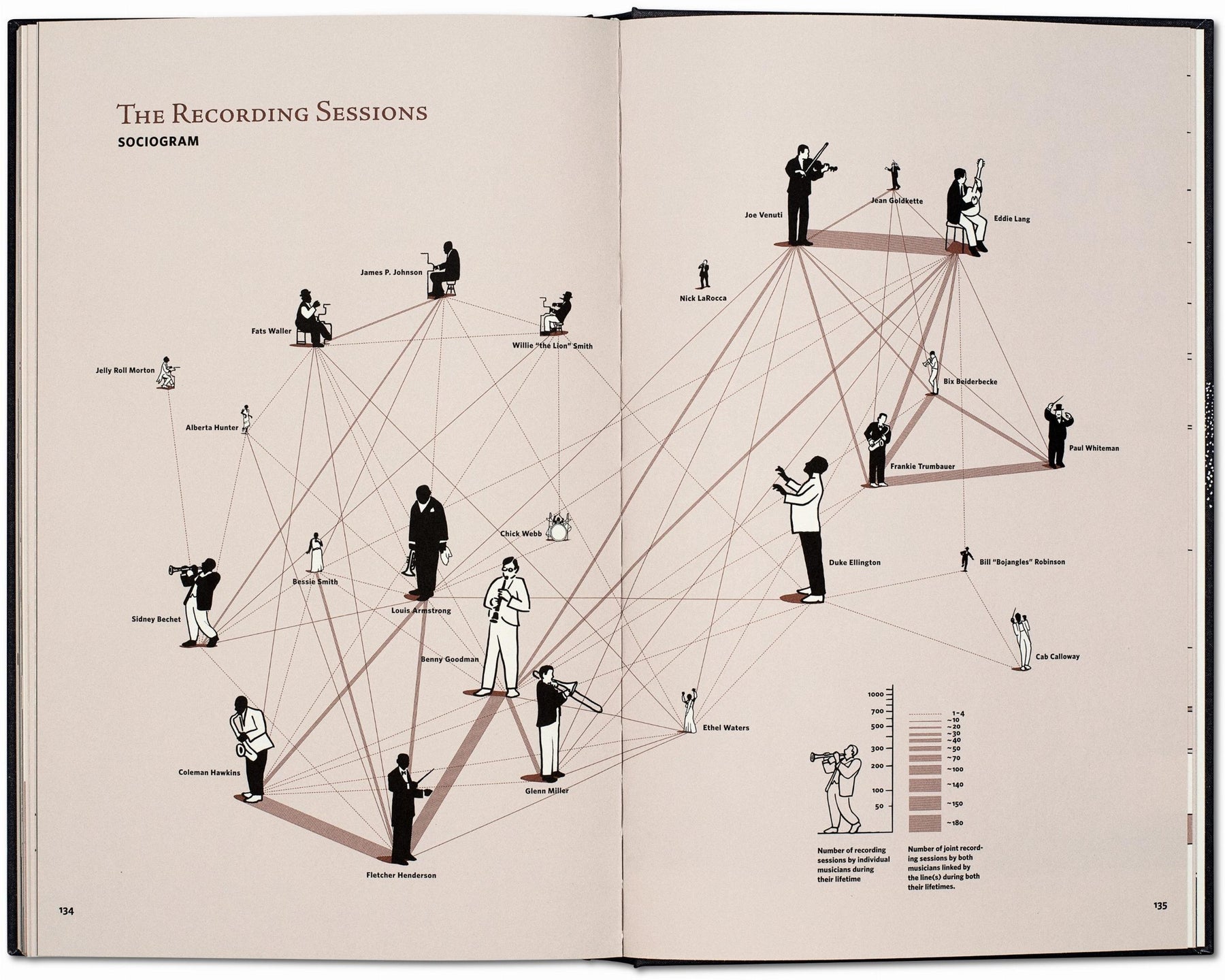 En los felices años veinte, la fiebre del jazz se desató en Nueva York. La gente abarrotaba los clubes nocturnos y las salas de baile de Harlem para ver a músicos como Louis Armstrong tocar con la Fletcher Henderson Orchestra en el Kentucky Club, o a Duke Ellington en el Roseland Ballroom o en el famosísimo Cotton Club. Diseñado, ilustrado y editado por Robert Nippoldt, este libro rinde homenaje a una era excepcional a través de una cautivadora mezcla de ilustraciones, datos y entretenidas anécdotas que tejen el retrato de 24 de los músicos más destacados de jazz en la Nueva York de la década de 1920. Los textos, obra de Hans-Jürgen Schaal, ofrecen una vívida crónica del ambiente en los clubes y de las 'batallas entre bandas', así como de las legendarias sesiones de grabación. Una lectura apasionante – y no solo para los amantes del jazz. International Book Award, 2014, Los µngeles International Design Award, 2014, Los µngeles Joseph Binder Award, 2014, Viena D&AD Award, 2014, Londres Good Design Award, 2014, Chicago A’ Design Award, 2014, Como (Italia) Best American Infographic, 2014, Nueva York