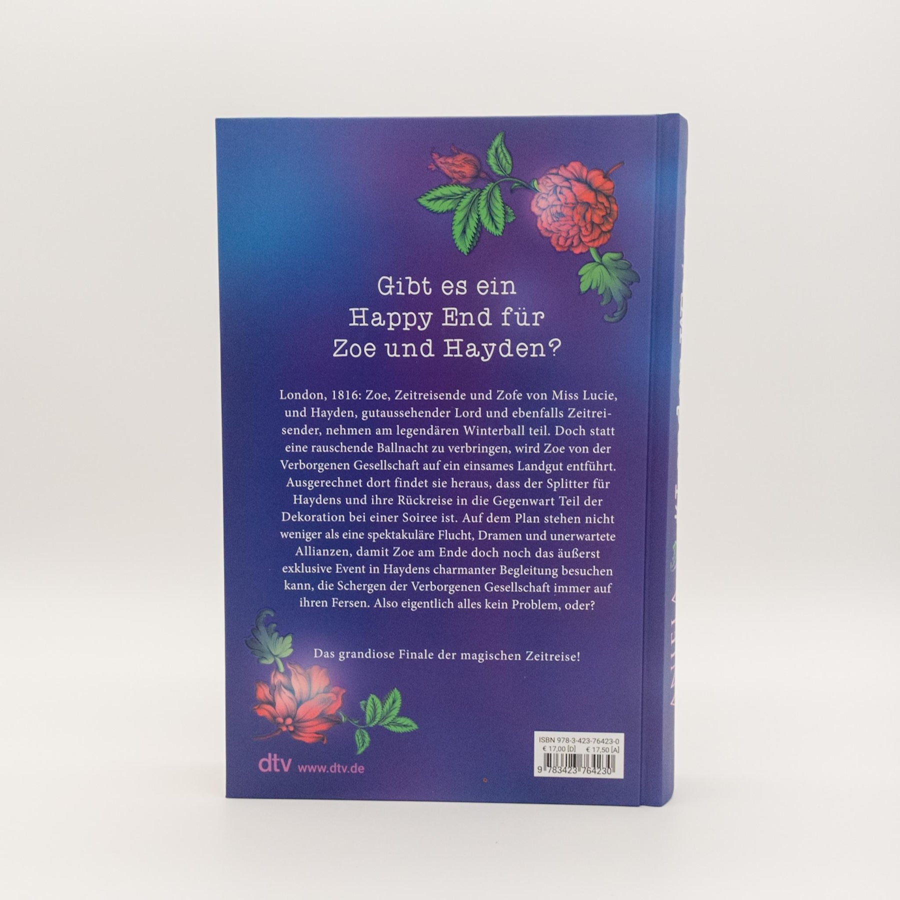 London, 1816: Zoe, Zeitreisende und Zofe von Miss Lucie, und Hayden, gutaussehender Lord und ebenfalls Zeitreisender, nehmen am legendären Winterball teil. Doch statt eine rauschende Ballnacht zu verbringen, wird Zoe von der Verborgenen Gesellschaft auf ein einsames Landgut entführt. Ausgerechnet dort findet sie heraus, dass der Splitter für Haydens und ihre Rückreise in die Gegenwart Teil der Dekoration bei einer Soiree ist. Auf dem Plan stehen nicht weniger als eine spektakuläre Flucht, Dramen und unerwartete Allianzen, damit Zoe am Ende doch noch das äußerst exklusive Event in Haydens charmanter Begleitung besuchen kann, die Schergen der Verborgenen Gesellschaft immer auf ihren Fersen. Also eigentlich alles kein Problem, oder?