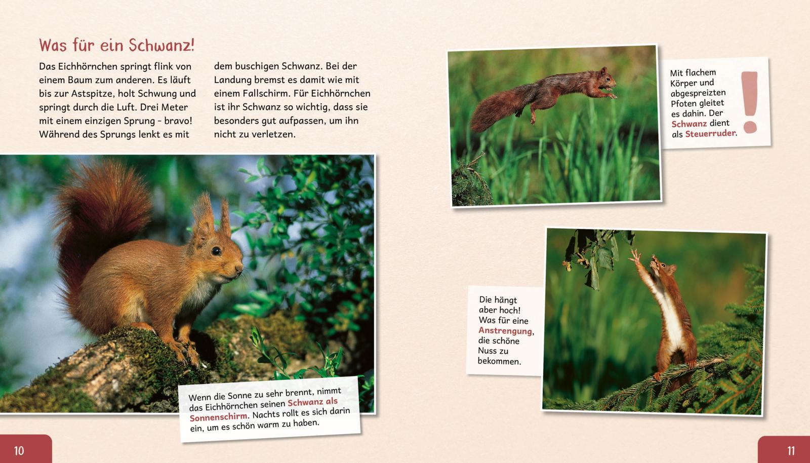 Kindersachbuch mit erstem Wissen über das Eichhörnchen. Wie lebt das Eichhörnchen im Wald? Wie kommen kleine Eichhörnchen zur Welt? Und wie bereitet sich der niedliche Nager auf den Winterschlaf vor? Mit großartigen Fotos und großer Schrift für Kinder ab 5 Jahren. Zum Vorlesen und ersten Selbstlesen bestens geeignet. Ideal für erste Referate.