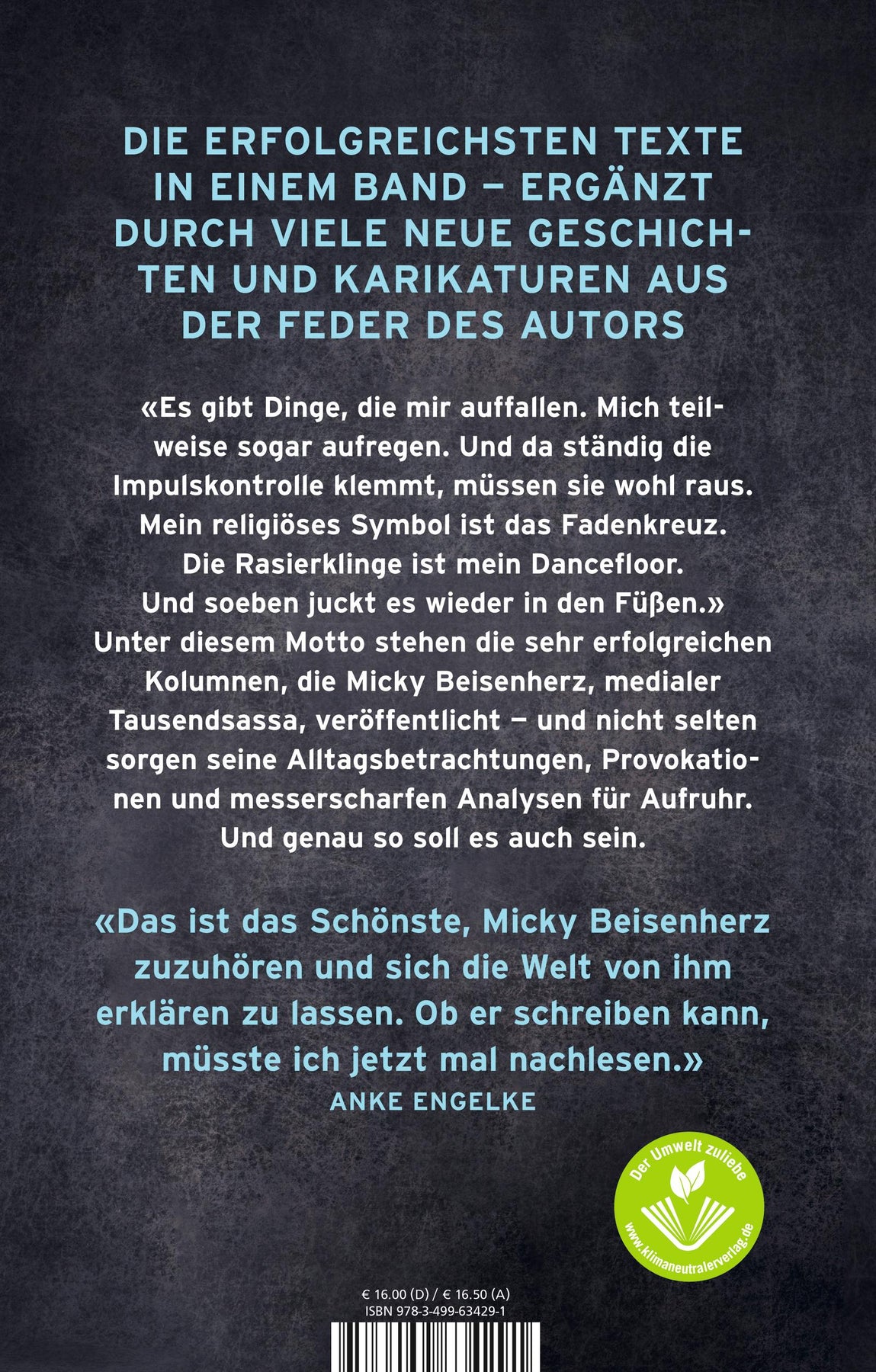 Unter diesem Motto stehen die sehr erfolgreichen Kolumnen, die Micky Beisenherz, medialer Tausendsassa, im Stern veröffentlicht - und nicht selten sorgen seine Alltagsbetrachtungen, Provokationen und messerscharfen Analysen für Aufruhr. Und genau so soll es auch sein - Beisenherz versteht es, die Klaviatur der sozialen Medien meisterhaft zu spielen.